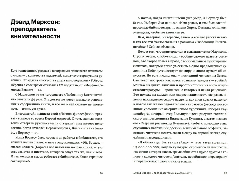 В этот сборник эссе Александр Поляринов сумел уместить очень многое. Многие из книг, о которых он рассуждает, я уже читала, многие из них неоднократно перечитывала, а некоторые прочитаю теперь, благодаря этой книге. В своих заметках Поляринов охватывает совершенно разные темы, но каждой странице здесь читателей ждёт сильный и глубокий текст. Думаю что эта книга - отличный пример того, как именно стоит преподносить литературу, как стоит знакомить читателей с тем, что им ещё не попадалось, но теперь эти книги появятся на их полках. Очаровывает именно манера писать, то, как ненавязчиво Поляринов увлекает в рассуждения с ним и с самой собой. Автор проделал колоссальную работу, которая вылилась в такой вот замечательный сборник, созданный из скрупулёзно подобранного материала, множества грамотно подобранных историй, о которых мы уже когда-то слышали, собственного мнения, лёгкого и приятного слога. Для любителей зарыться во что-то новое это будет потрясающее приобретение, рекомендую.