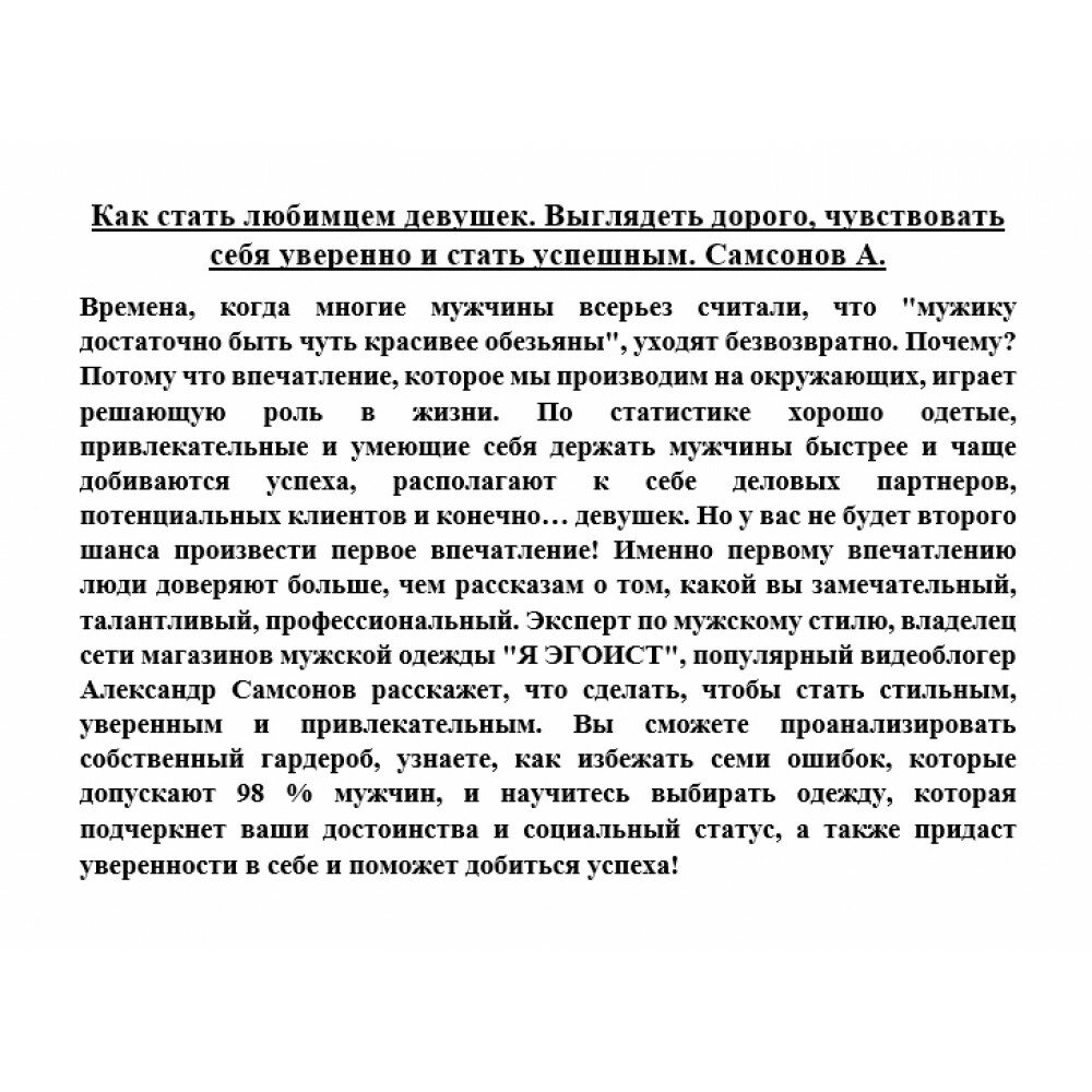 Сервис сравнения цен СкидкаГИД предлагает сравнить цены на товар «Книга: Как стать любимцем девушек. Выглядеть дорого чувствовать себя уверенно и стать успешным (Александр Владимирович Самсонов); АСТ, 2019»