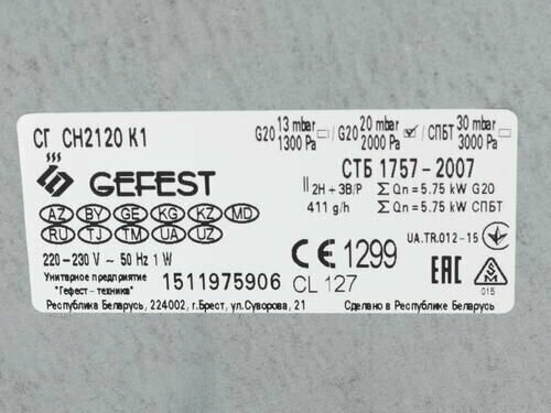 Встраиваемая газовая панель Gefest СН 2120 К1