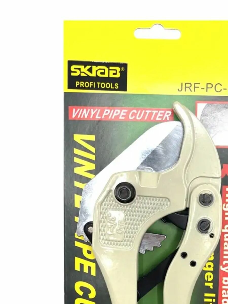 Ножницы для резки пластиковых и металлопластиковых труб диаметром до 42мм SKRAB. Лезвия изготовлены из нержавеющей хром-ваннадиевой стали. Эргономичная пластиковая ручка обеспечивает удобство при работе.