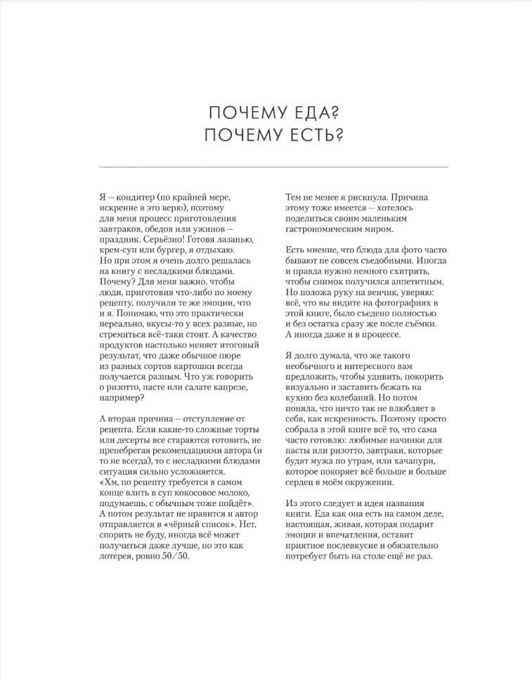 книга "Еда как есть" отличное приобретение в мою кулинарную библиотеку. Рецепты все понятно написаны и состоят из доступных продуктов, за очень редким исключением. иллюстрации на высоте, матовые страницы приятно листать. книга вызвала как кулинарное , так и эстетическое наслаждение.