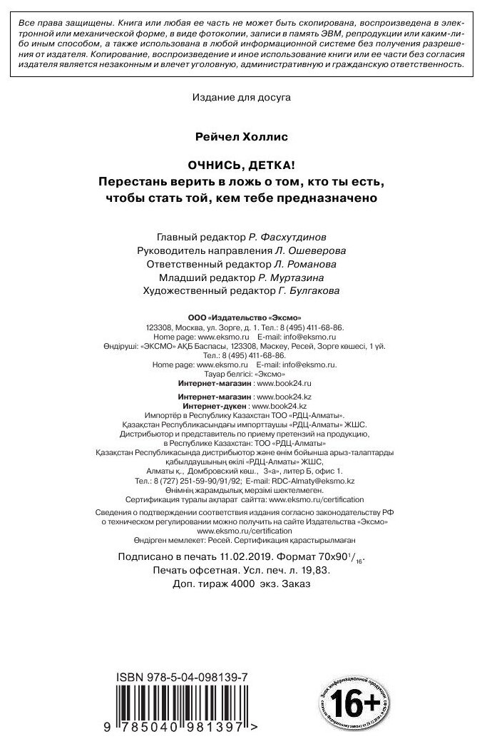 Очнись детка! Перестань верить в ложь о том кто ты есть чтобы стать той кем тебе предназначено (Холлис Рейчел); Эксмо, 2019