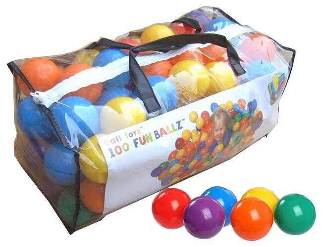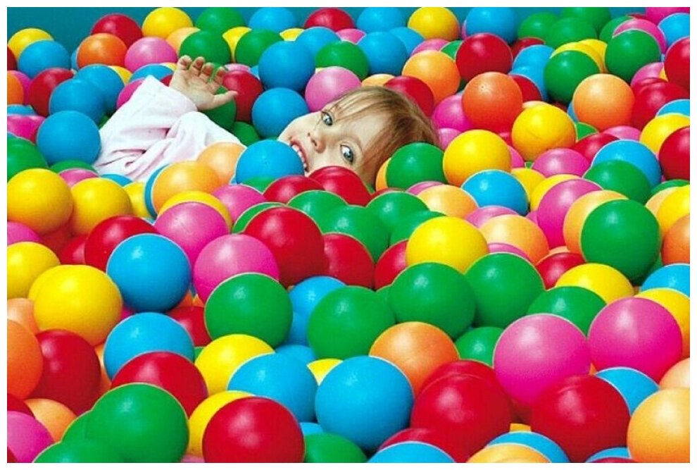 "Новый набор из 100 пластмассовых шариков диаметром 8 см каждый предназначен для наполнения сухих бассейнов и разных игровых центров и батутов. Все ребятишки любят ""купаться"" и нырять в таких шариках. Они максимально смягчают удары – на случай, если малыши будут прыгать в них с какого-либо возвышения (и вы можете не бояться, что малыши травмируются)."