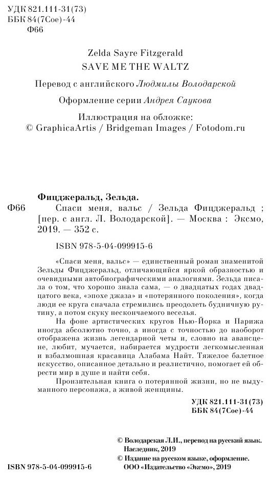 Книга: Спаси меня вальс (Зельда Сейр Фицджеральд); Эксмо, 2019
