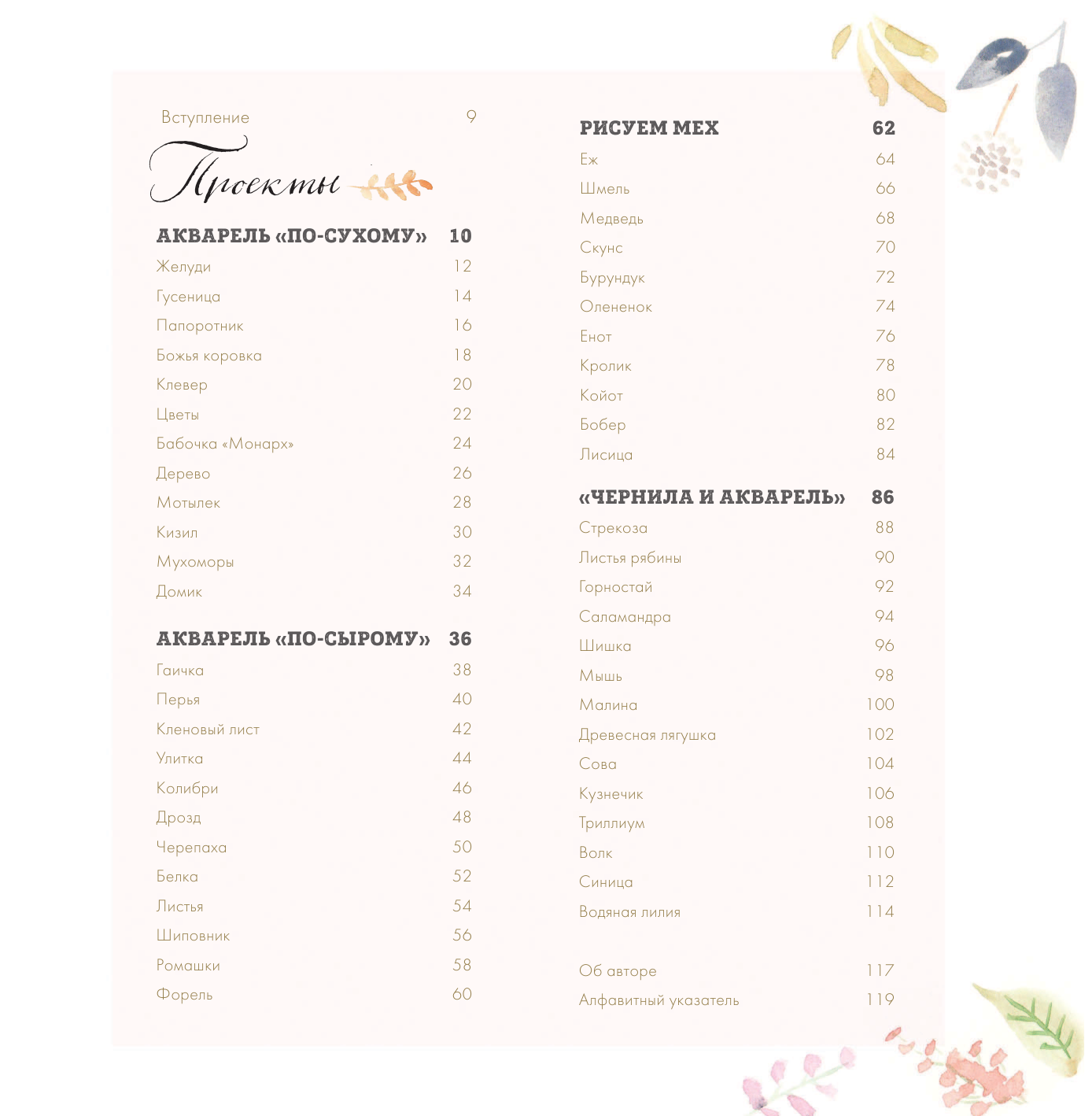 От листьев и желудей до хитрой лисички и забавного ежика - вы научитесь создавать чудесные тематические акварельные рисунки всего за несколько простых шагов. В книге предоставлено 50 ярких проектов, которые смогут нарисовать даже начинающие художники. Для работы над каждым из них предлагается необходимая акварельная палитра, подробные и доступные инструкции, а также для каждого рисунка даны легкие контуры, на которые удобно опираться при работе.