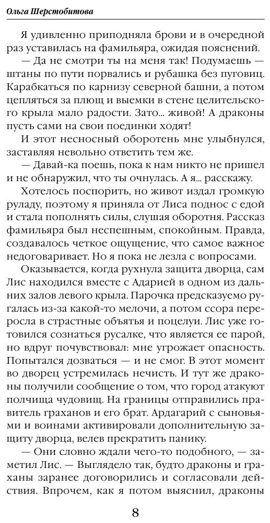 Хороший роман и удачное завершение цикла «Злодей для ведьмы». Неожиданная концовка и развязка удивили и порадовали. Здесь и поиск воздушного замка, и перемирие двух враждующих народов - драконов и оборотней. И, конечно, непередаваемая история любви. Очень яркая, цепляющая, создающая антураж для всей дилогии. И к тому же приправленная легким юмором и забавными ситуациями, в которые попадают герой. Впрочем, это уже стало визитной карточкой автора)