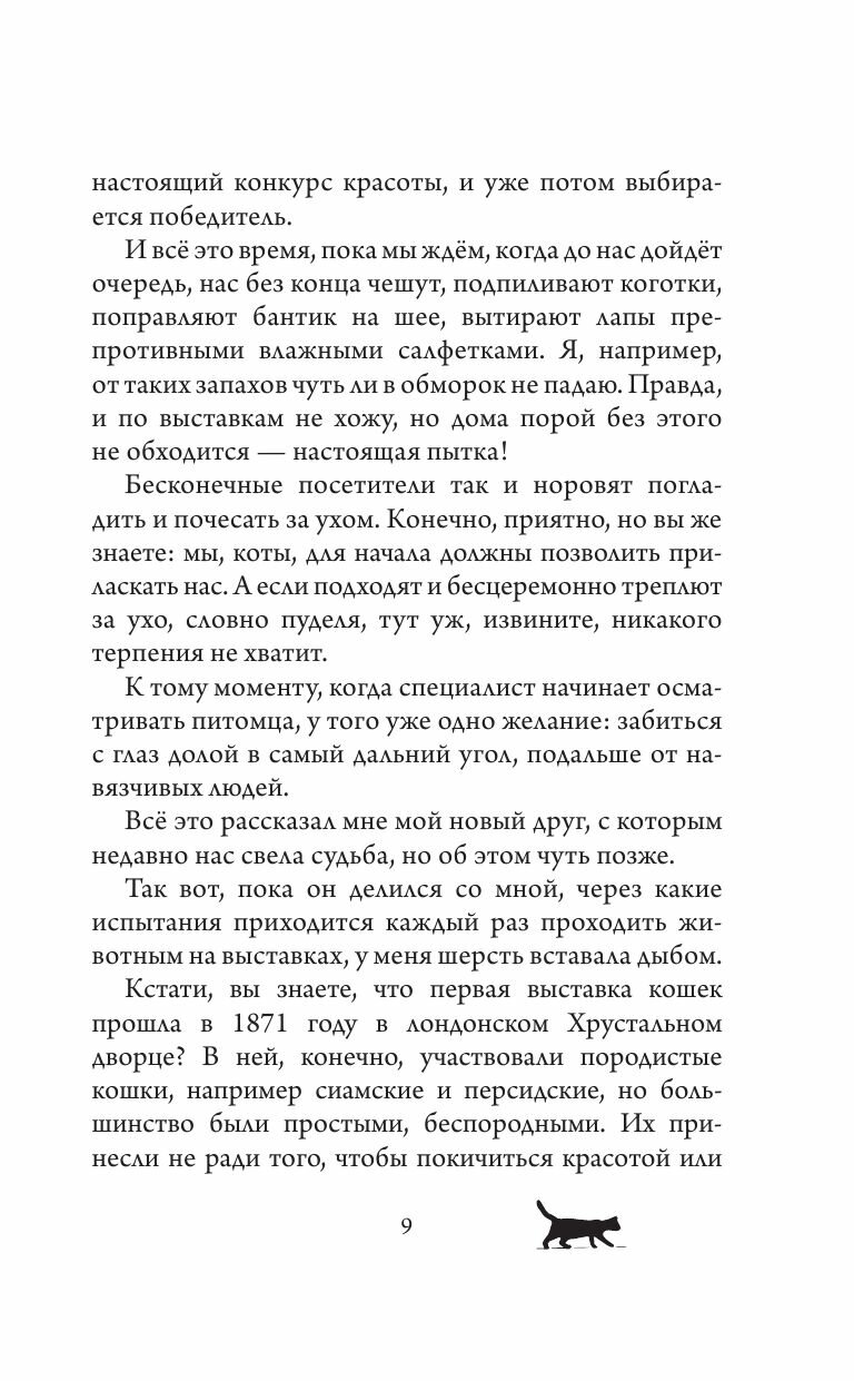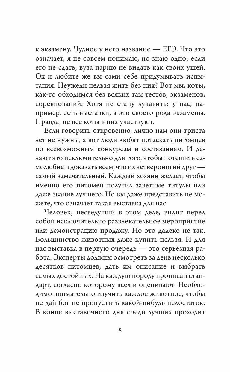 Неплохое соотношение цены и качества, особенно если покупать со скидкой. Бумага белая,тонкая, но текст почти не просвечивает. Шрифт удобный для чтения, рисунков нет, но каждая вторая страница внизу украшена фигуркой идущего чёрного котика. Симпатичное оформление обложки. Нравится и цветовая гамма, и рисунок. В руках книгу не очень приятно держать из-за того, что мне на ощупь обложка кажется какой-то липкой. Я не поклонница творчества Михаила Самарского. Купила эту книгу по просьбе сына. Ему понравились "Невероятные приключения кота Сократа" и он захотел прочитать продолжение истории.
