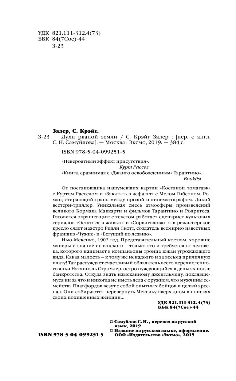 Книга: Духи рваной земли (Самуйлов Сергей Николаевич (переводчик), Залер Крейг С.); ГрандМастер, 2019