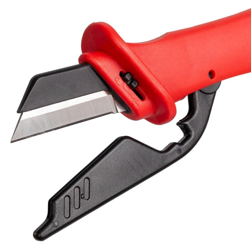 | Прочие особенности и свойства | Для работы под напряжением до 1000 В,Прямое, частично изолированное лезвие для защиты от короткого замыкания,Лезвие из японской нержавеющей стали,Твердость лезвия HRC 51...53,Дополнительное сменное лезвие в комплекте,Изолированная рукоятка с упором для пальцев,Встроенный складывающийся защитный чехол на лезвие для безопасного хранения и транспортировки,Зачистка жил от окисной пленки, снятие оболочки и изоляции кабеля |