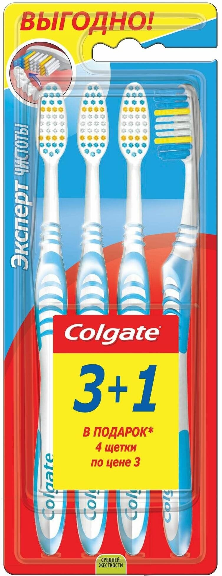 Зубная щетка Colgate Эксперт Чистоты многофункциональная средней жесткости в ассортименте 4 шт.