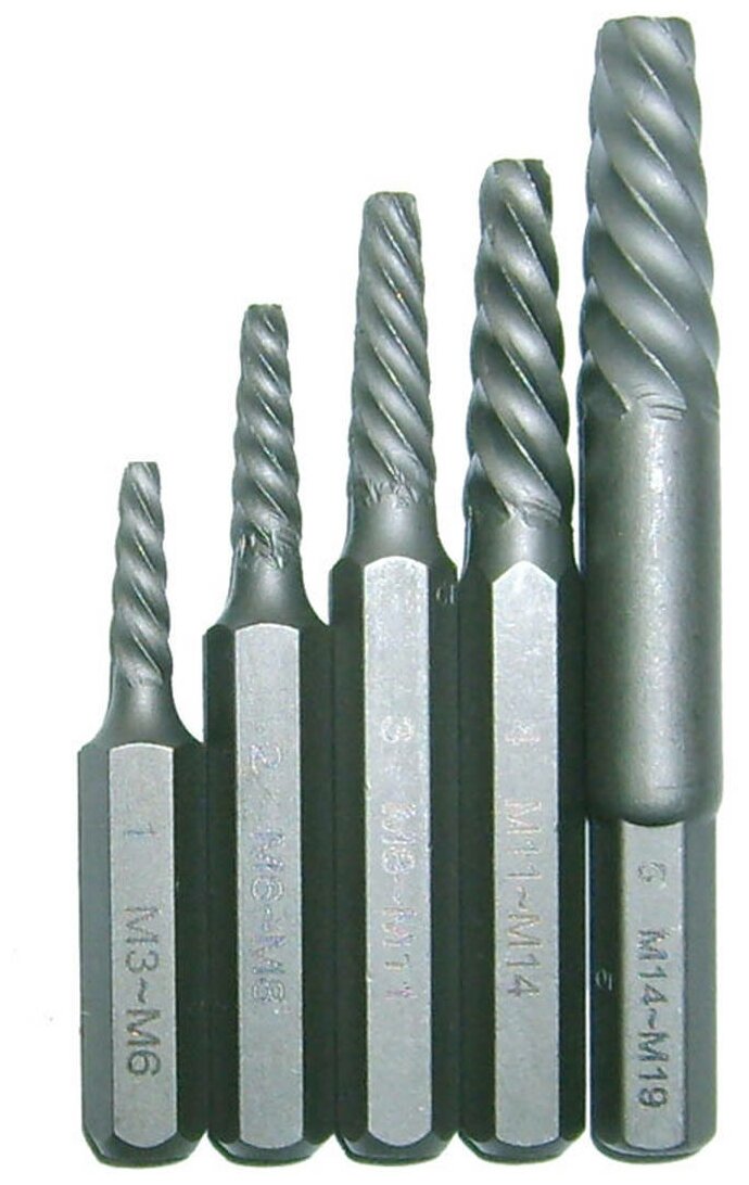 - Набор экстракторов для извлечения обломленных болтов, винтов, шпилек