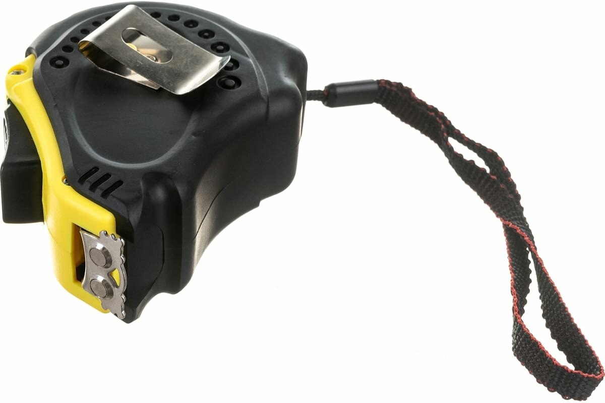 Корпус рулетки измерительной изготовлен из прорезиненного ударопрочного пластика, имеет пылеотталкивающее покрытие. Лента выполнена из качественной углеродистой стали с эмалевым покрытием и высоким показателем износоустойчивости, позволяет производить измерения в горизонтальной и вертикальной плоскости без излома полотна. Лента имеет двухстороннюю шкалу для удобства разметки. Рулетка Скраб имеет одну жесткую фиксацию, позволяющую оставлять ленту в выдвинутом состоянии на неограниченное время. Рулетка имеет мощный механизм возврата ленты, что позволяет быстро вернуть ленту в исходное положение. Металлический крючок надежно крепится к ленте при помощи трех заклепок.