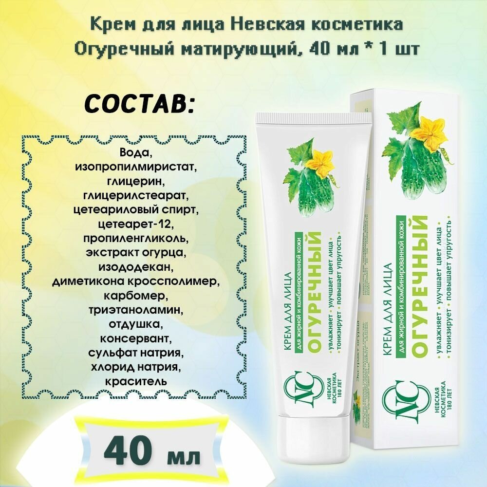 Невская Косметика Крем для лица Огуречный для жирной и комбинированной кожи 40 мл