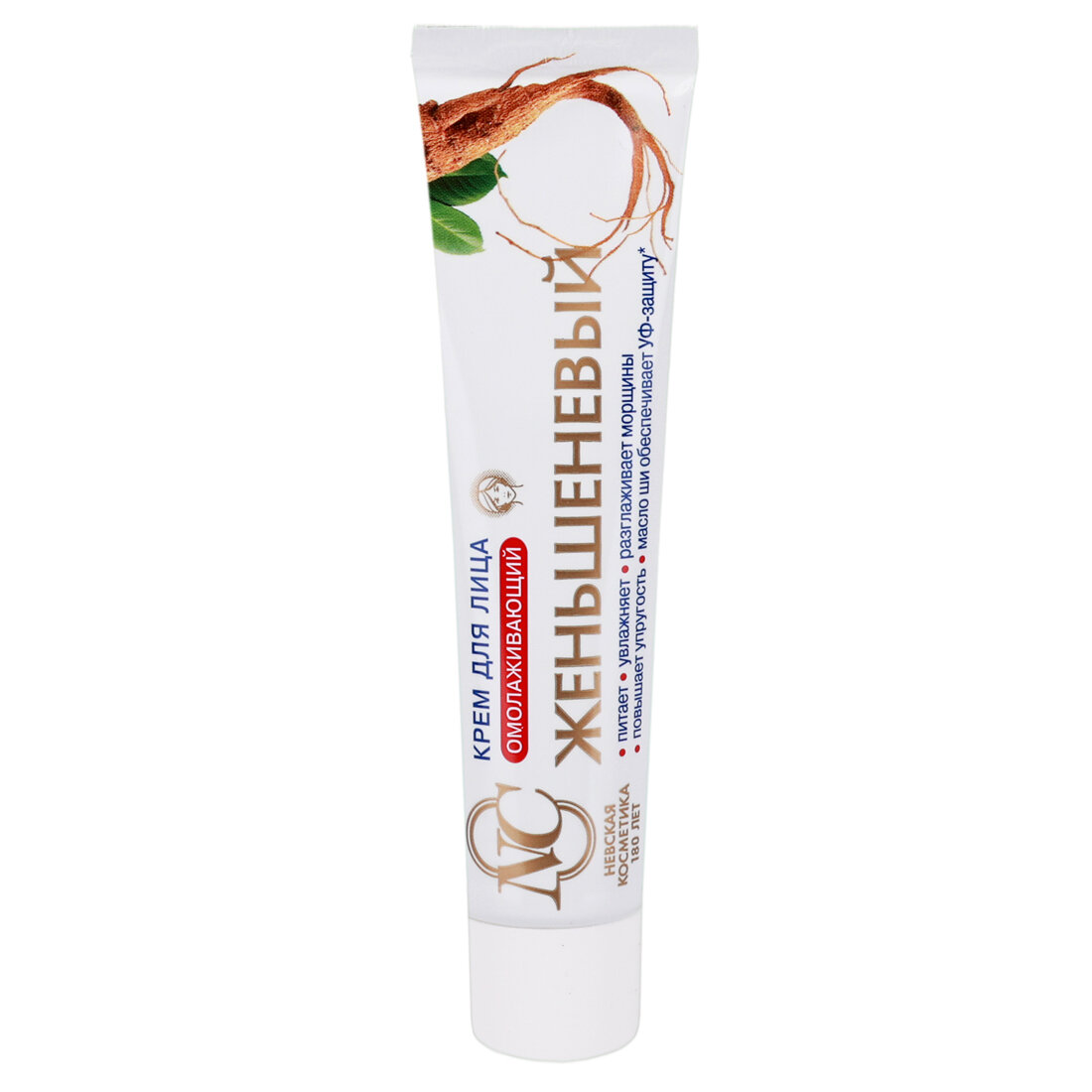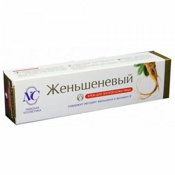 Крем для лица Невская косметика Женьшеневый борется с 5 признаками возрастных изменений кожи: неровная поверхность кожи, тусклый цвет лица, потеря упругости, морщины, сухость. Предназначен для ухода за кожей лица с 30 лет. Благодаря содержанию активных компонентов крем способствует сохранению красоты и молодости, защищает клетки кожи от неблагоприятных факторов внешней среды и преждевременного старения.