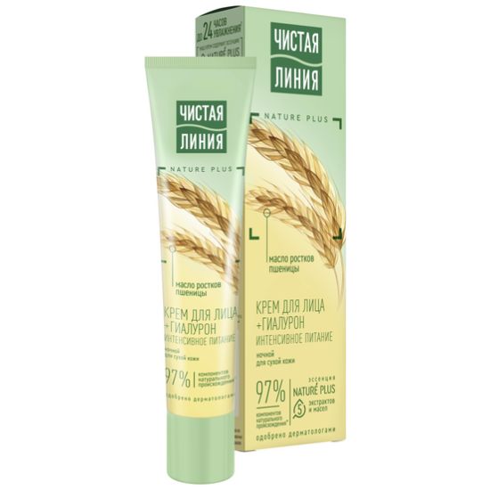 Чистая Линия ночной крем для лица Интенсивное питание для сухой кожи Гиалурон и масло ростков пшеницы 40 мл