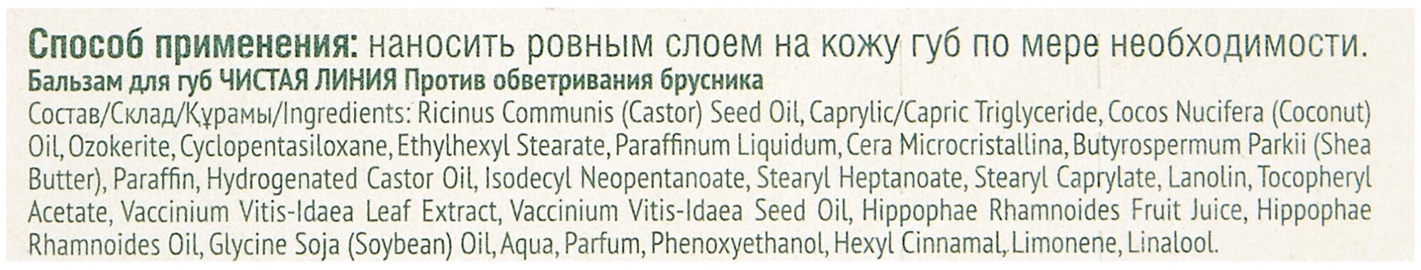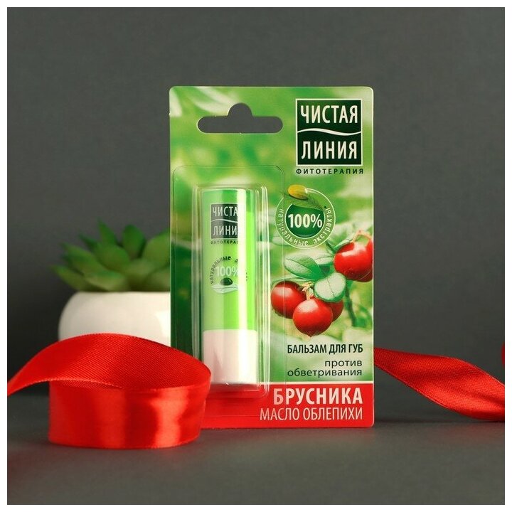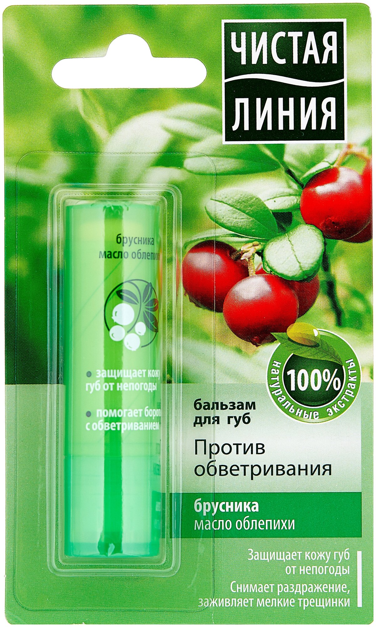 - Чистая линия Бальзам для губ Против обветривания брусника 4 г