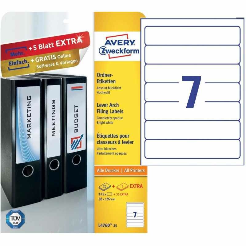 Этикетки Avery Zweckform A4 38x192мм 7шт на листе/80г/м2/25л./белый самоклей. универсальная L4760-25
