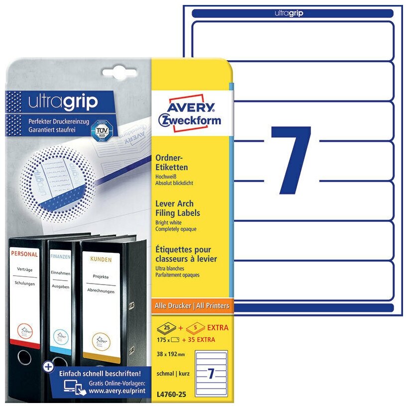 Сервис сравнения цен СкидкаГИД предлагает сравнить цены на товар «Этикетки Avery Zweckform A4 38x192мм 7шт на листе/80г/м2/25л./белый самоклей. универсальная L4760-25»