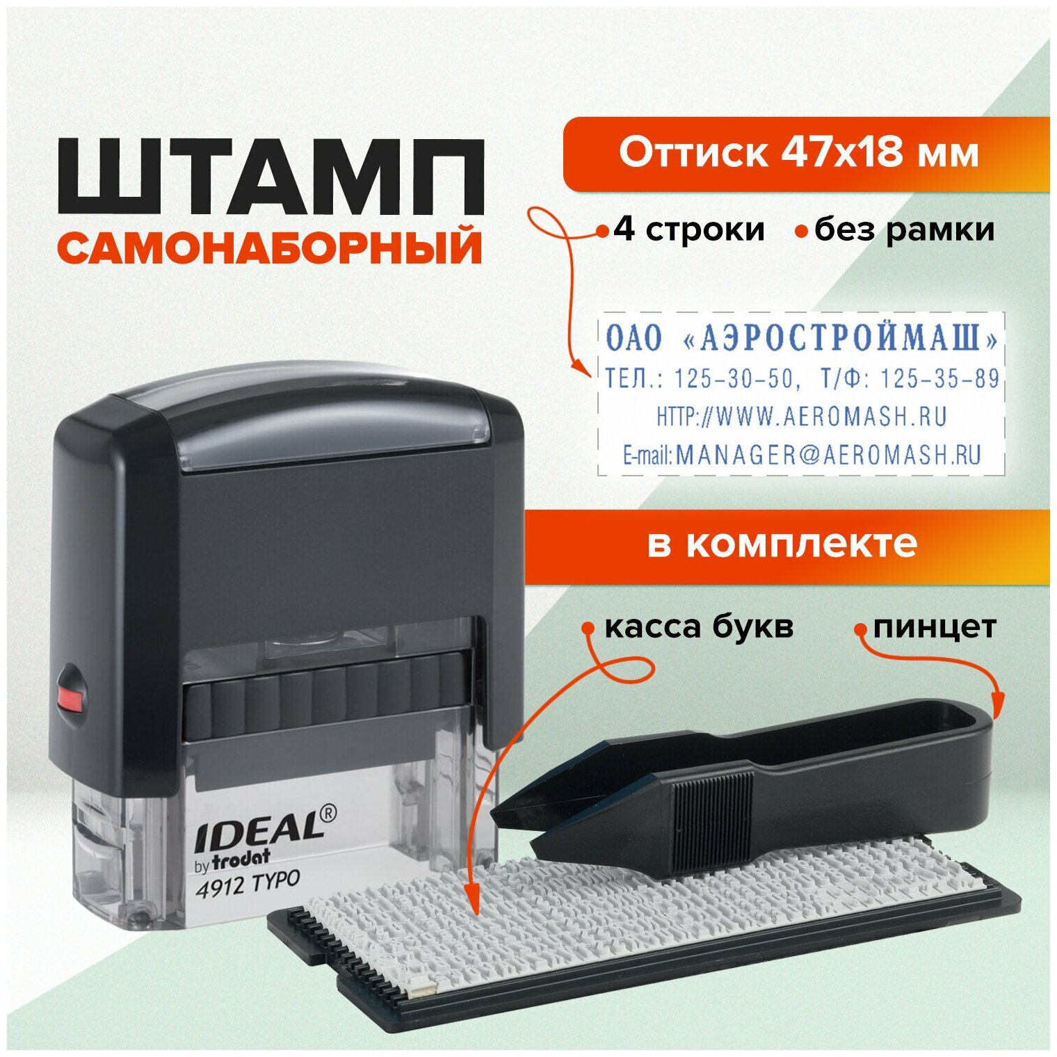 Самонаборный штамп автоматический TRODAT 4912/DB TYPO P2 IDEAL оттиск 47 х 18 мм шрифт 3.1/2.2 мм прямоугольный 4912/DB TYPO P2 IDEAL