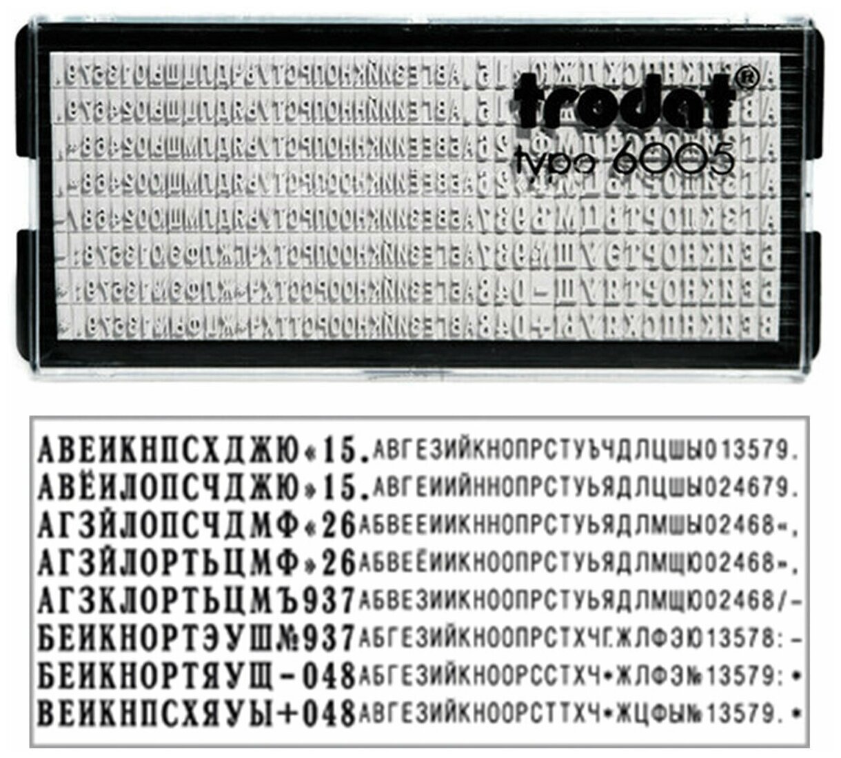| Комплект поставки | Одна касса шрифта, пинцет, сменная подушка |