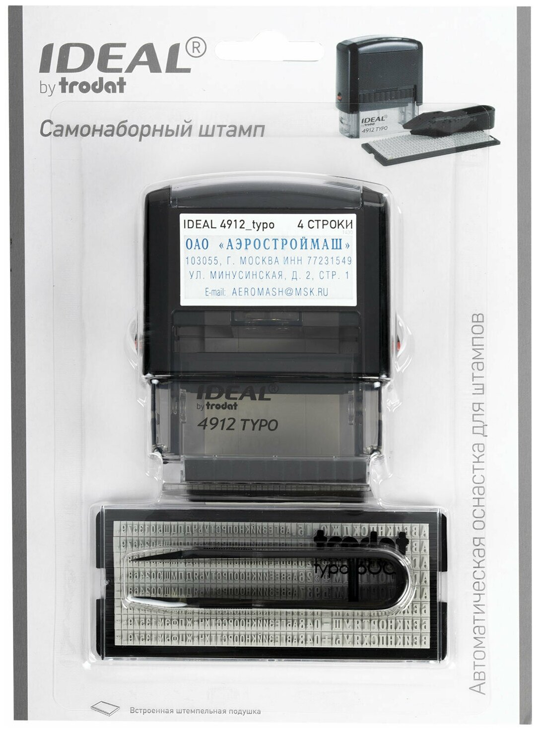 Самонаборный штамп Trodat 4912/DB Typo P2 Ideal 4912/DB TYPO P2 IDEAL, корпус пластик, прямоугольный формат оттиска