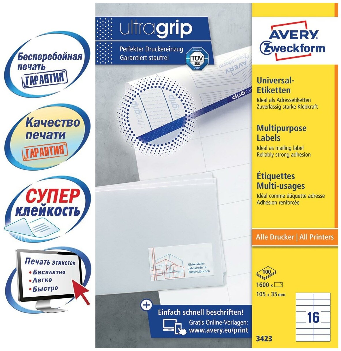 | Описание | Абсолютно точная подача листов в принтер благодаря технологии ultragrip на обратной стороне листа Гарантированная печать без застревания на лазерных, струйных принтерах и копирах Экстра четкий отпечаток текста и изображения без размытия на любом принтере Улучшенный клей:крепкое и надежное приклеивание к бумаге, картону, стеклу, пластику, металлу БЕСПЛАТНЫЕ шаблоны и фирменное программное обеспечение для созданиия и печати самоклеющейся бумаги на принтере |