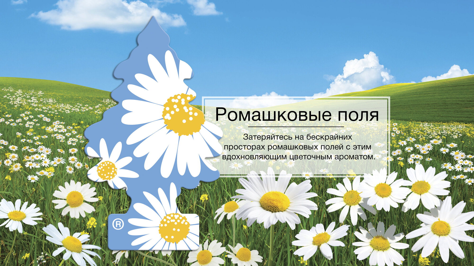 Освежитель воздуха Little Trees уникален по эффективности действия, насыщенности и стойкости запаха. Ощутите всю свежесть бескрайних ромашковых полей, ярко освещенных теплыми лучами щедрого летнего солнца, с ароматизатором Little Trees Ромашковые поля и наслаждайтесь летом каждый день – независимо от времени года!