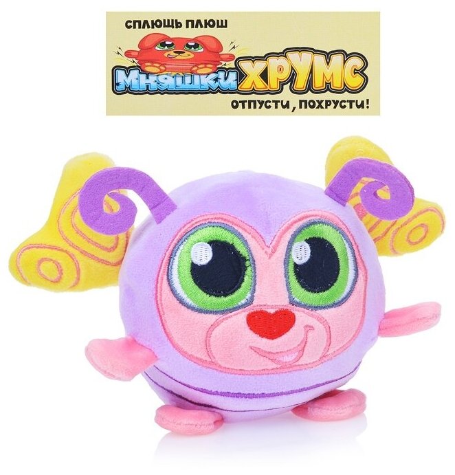 Плюшевая игрушка 1TOY «Мняшки Хрумс» Молли Хрумс – милая сиреневая пчелка Молли с большими красивыми зелеными глазками, желтыми крылышками, закрученными усиками не оставит равнодушными маленьких любителей похрустеть! Можно хрустеть на полу или в ящике стола, на детской площадке или в рюкзаке. Сплющ плюш - отпусти, похрусти! Невозможно остановиться. А если сесть на Молли, она захрустит ещё веселее! Сплющ ее снова и снова! Простая и легкая в использовании игрушка станет верным другом для ребенка.