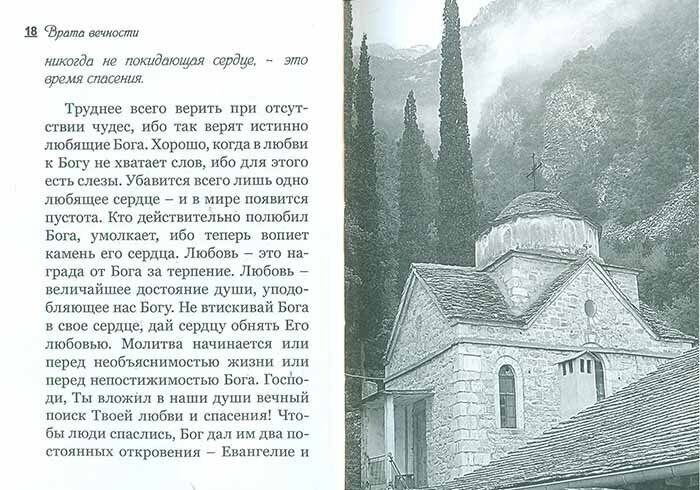 Книга "Врата вечности" - не легкое чтение. Ее содержание призывает нас к познанию того, что вечность -это состояние преображенной души, обретшей ведение Бога и обнимающей своими любящими объятиями всю эту удивительную и многообразную вселенную. "От образов мира сего к отсутствию всяких образов в Божестве", - такова суть духовного роста каждого человека, ищущего спасения. Книга говорит о вечности не как о концепции времени, но, в первую очередь, как о духовном понятии, составляющем суть этих уроков духовного рассуждения.