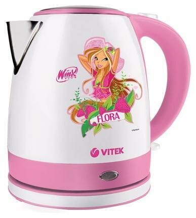 Чайник Vitek Winx WX-1001 FL Flora имеет стильный дизайн и непременно понравится всем поклонницам мультсериала Winx. Эргономичный корпус изготовлен из термостойкого пищевого пластика. Благодаря высокой мощности, нагрев воды происходит быстро. Скрытый нагревательный элемент обеспечивает легкую очистку от накипи. Чайник достаточно компактен и имеет оптимальный объем. Включается нажатием на одну кнопку и выключается автоматически при закипании воды.