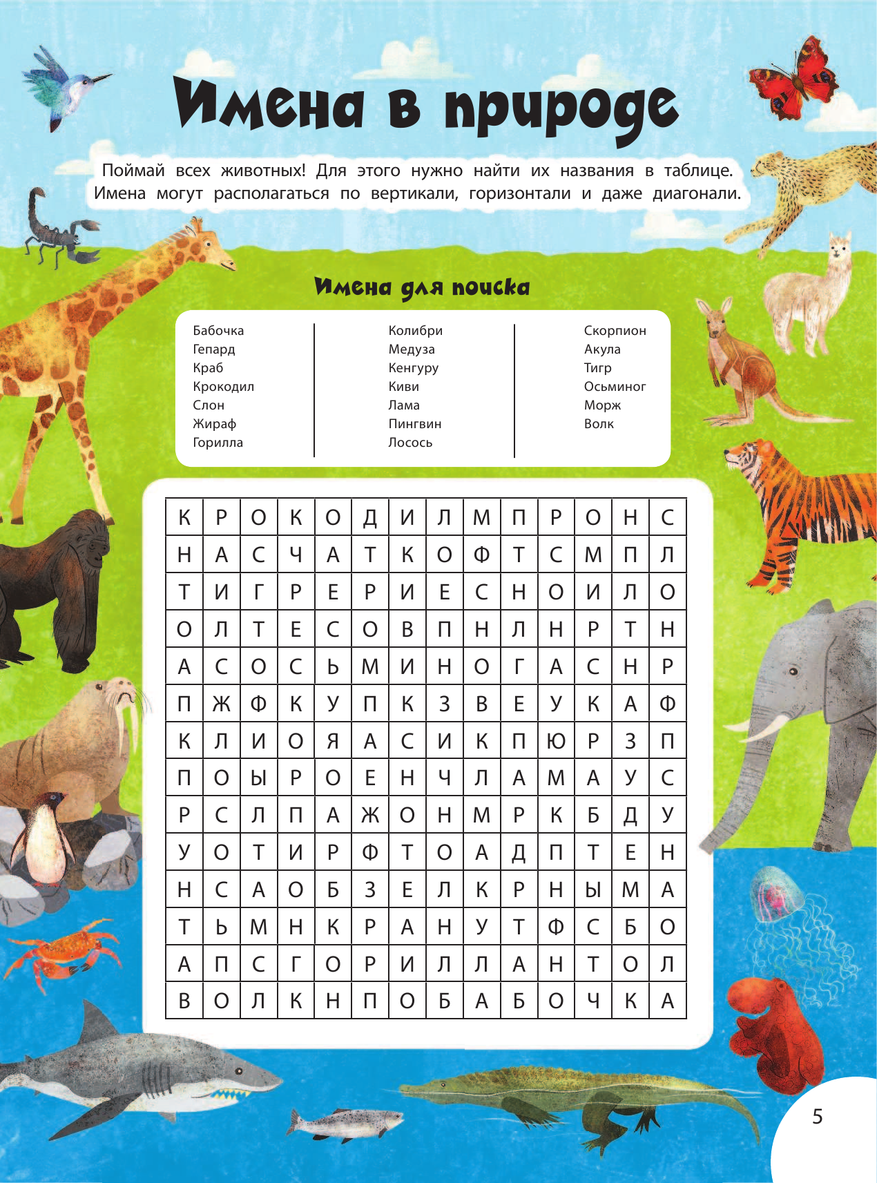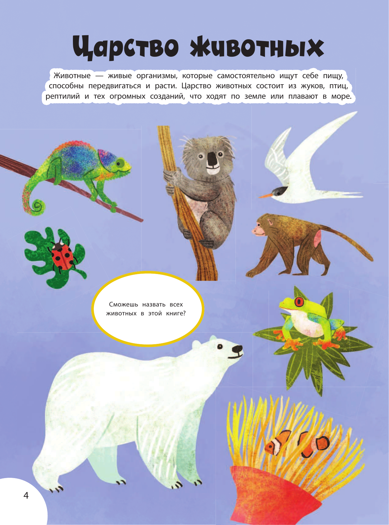 Если ты без ума от животных, тебе просто необходима эта книга! Концентрация интересных фактов на одну страницу настолько зашкаливает, что животные вот-вот выпрыгнут с разворотов книги. - Решай классные головоломки - проходи лабиринты в джунглях, ищи отличия… и не только! - Прояви свою креативность в раскрашивании и пошаговом рисовании! - Узнай всё самое интересное о созданиях, населяющих нашу планету. Для младшего школьного возраста.
