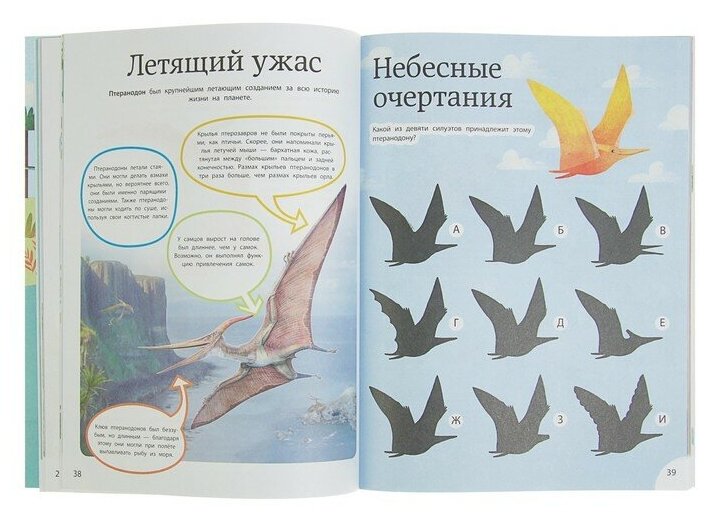 Книга в мягкой обложке, нам понравилась, я заказала для подарка и закажу своим сыновьям.Книга идеально нам подойдёт для дальних поездок (в транспорте или скрасить момент ожидания). Почитать факты о динозаврах, выполнить ребус, раскрасить, найти тени или поиграть в «правда-ложь» и многое другое. В конце книги есть страницы с ответами. Книга от 5-6 лет. Иллюстрации в смешанной технике.