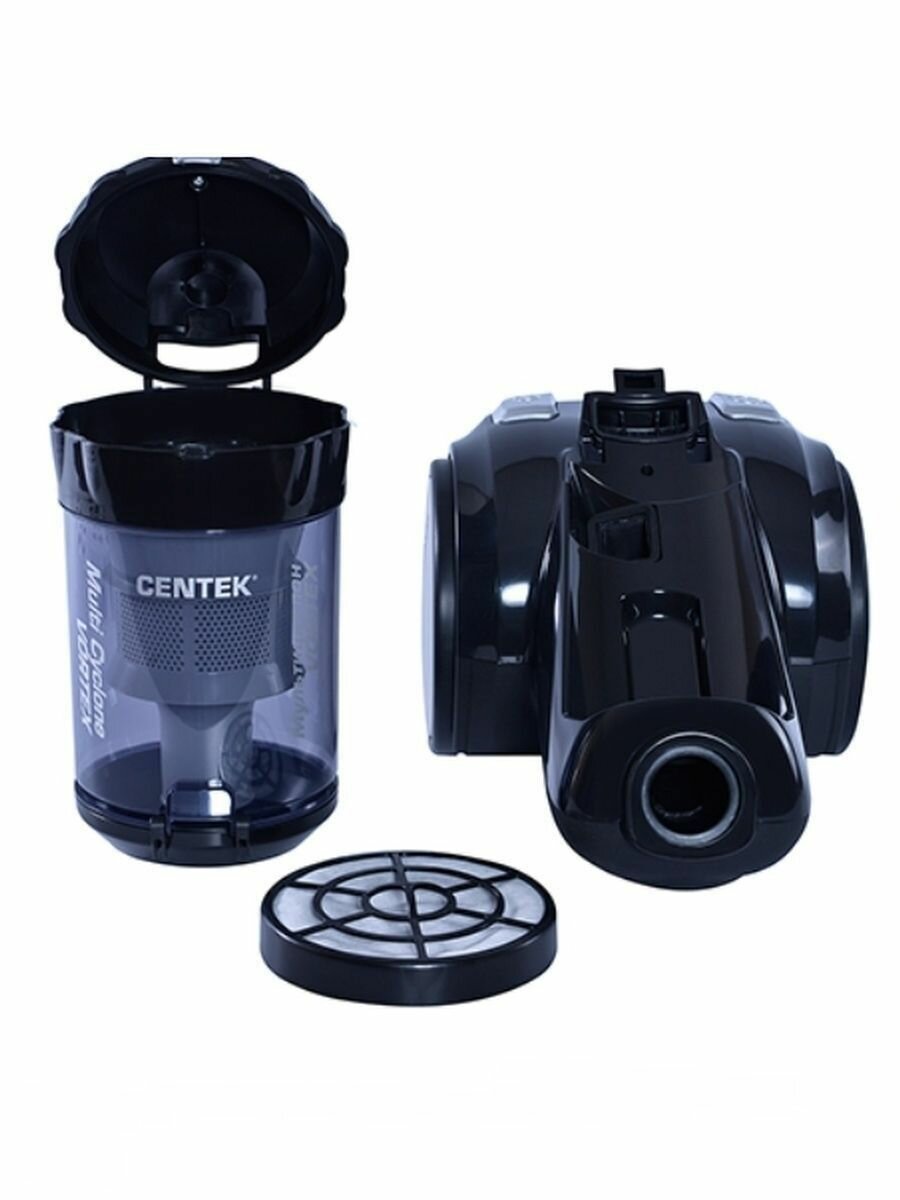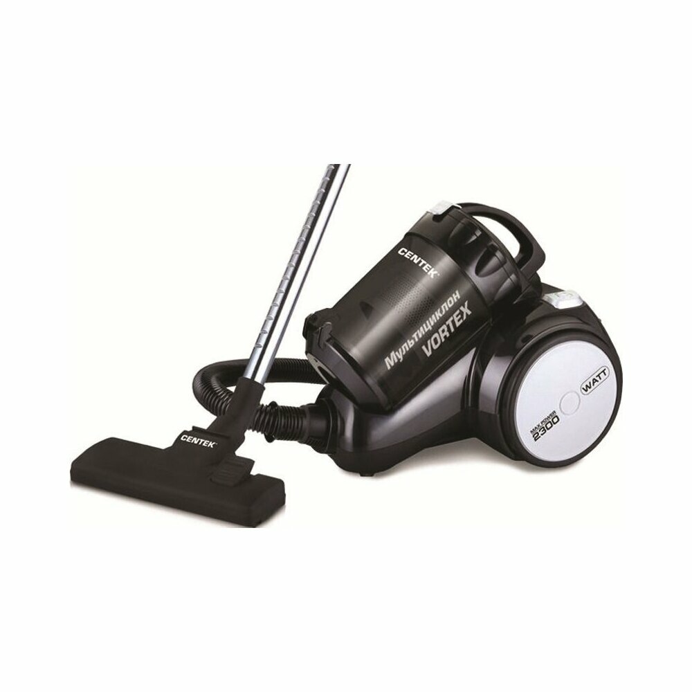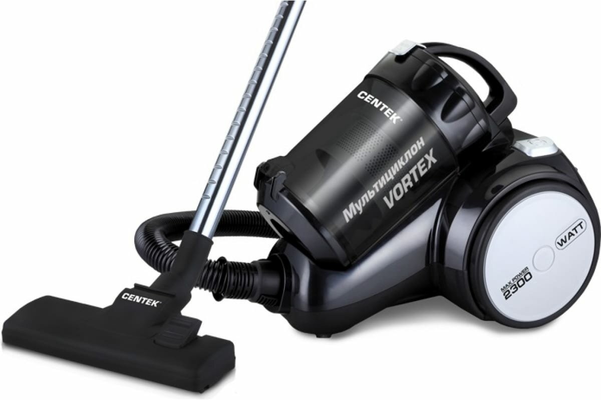 Пылесос Centek оборудован двигателем, мощность которого равна 2300 Вт. Его возможностей вкупе с продуманной конструкцией прибора достаточно для обеспечения завидной мощности всасывания: она равна 420 Вт. Пылесос предназначен для сухой уборки. Использовать его можно как в жилых, так и в офисных помещениях. В качестве пылесборника модель использует 2-литровый циклонный фильтр, который просто очищать. Эффективности уборки способствует фильтр тонкой очистки.