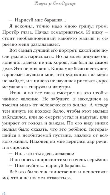Заказала сыну не задумываясь, так как Маленький принц Антуана де Сент-Экзюпери одни из тех сказок, с которой дети обязательно должны ознакомиться. Читается легко, интересно. Учит хорошему, справедливости. Развивает фантазию. Книга приятная глаз, белые плотные листы, твердая обложка. Много иллюстраций - для детей это важно, без картинок не так интересно будет.