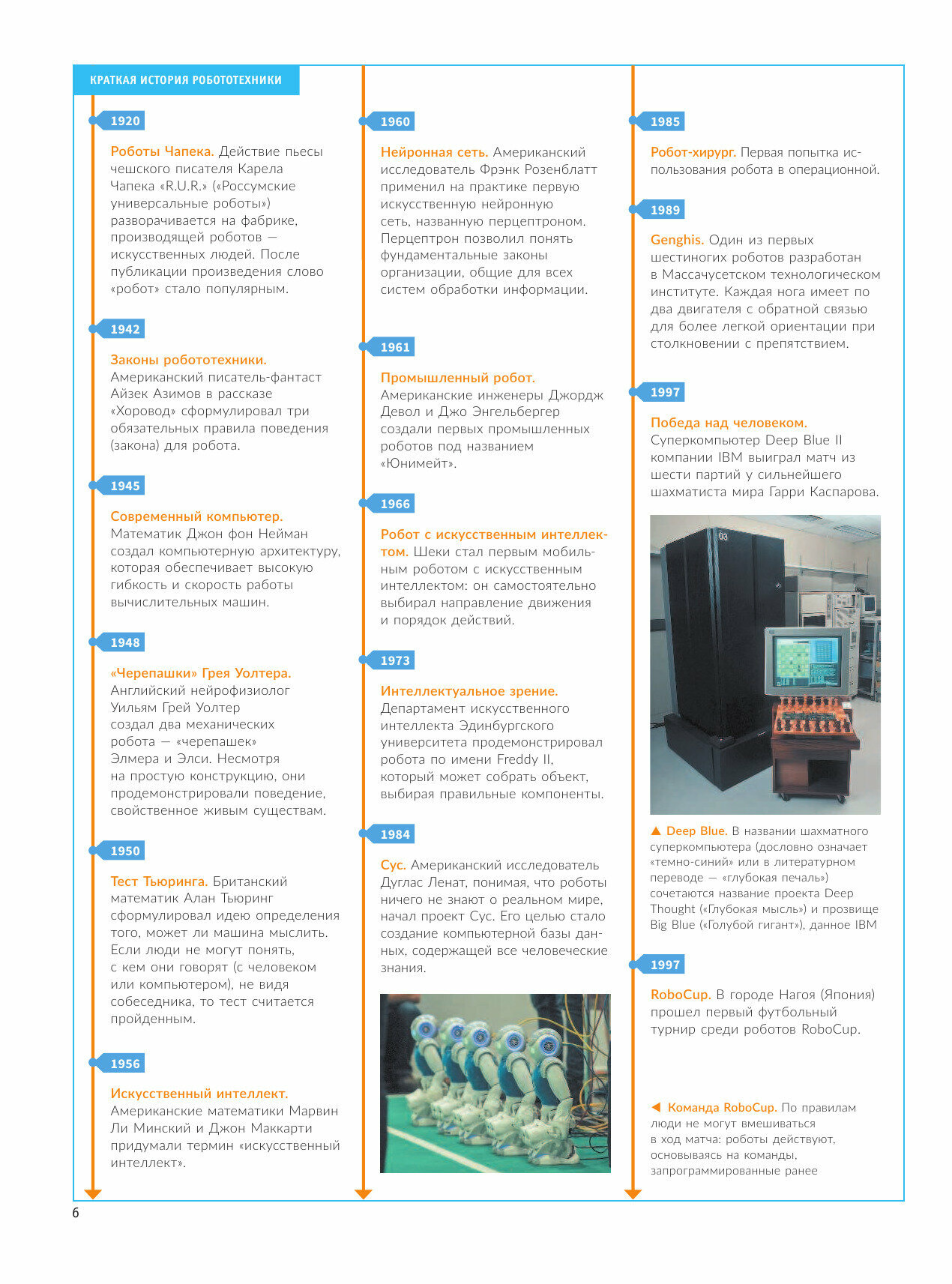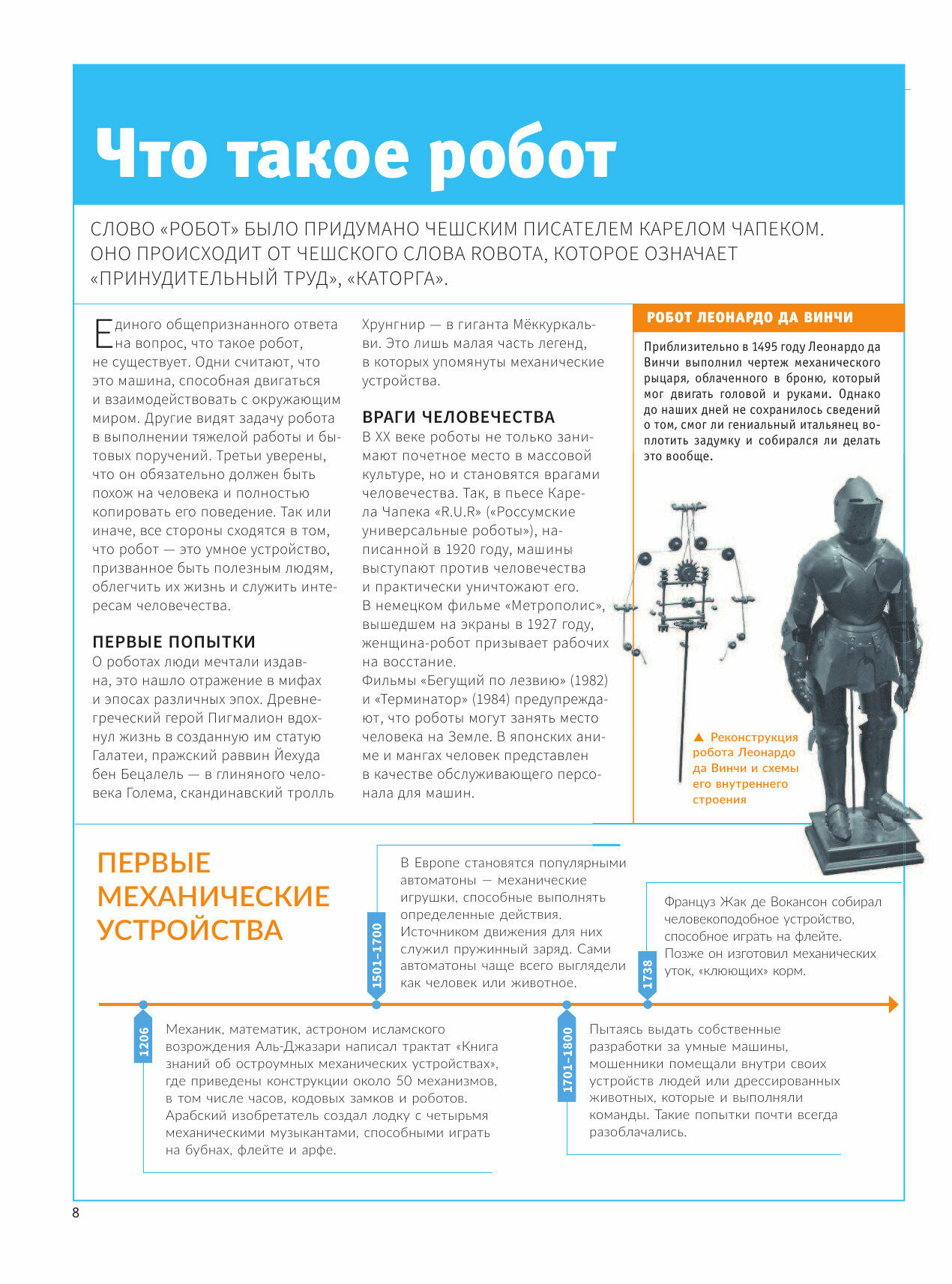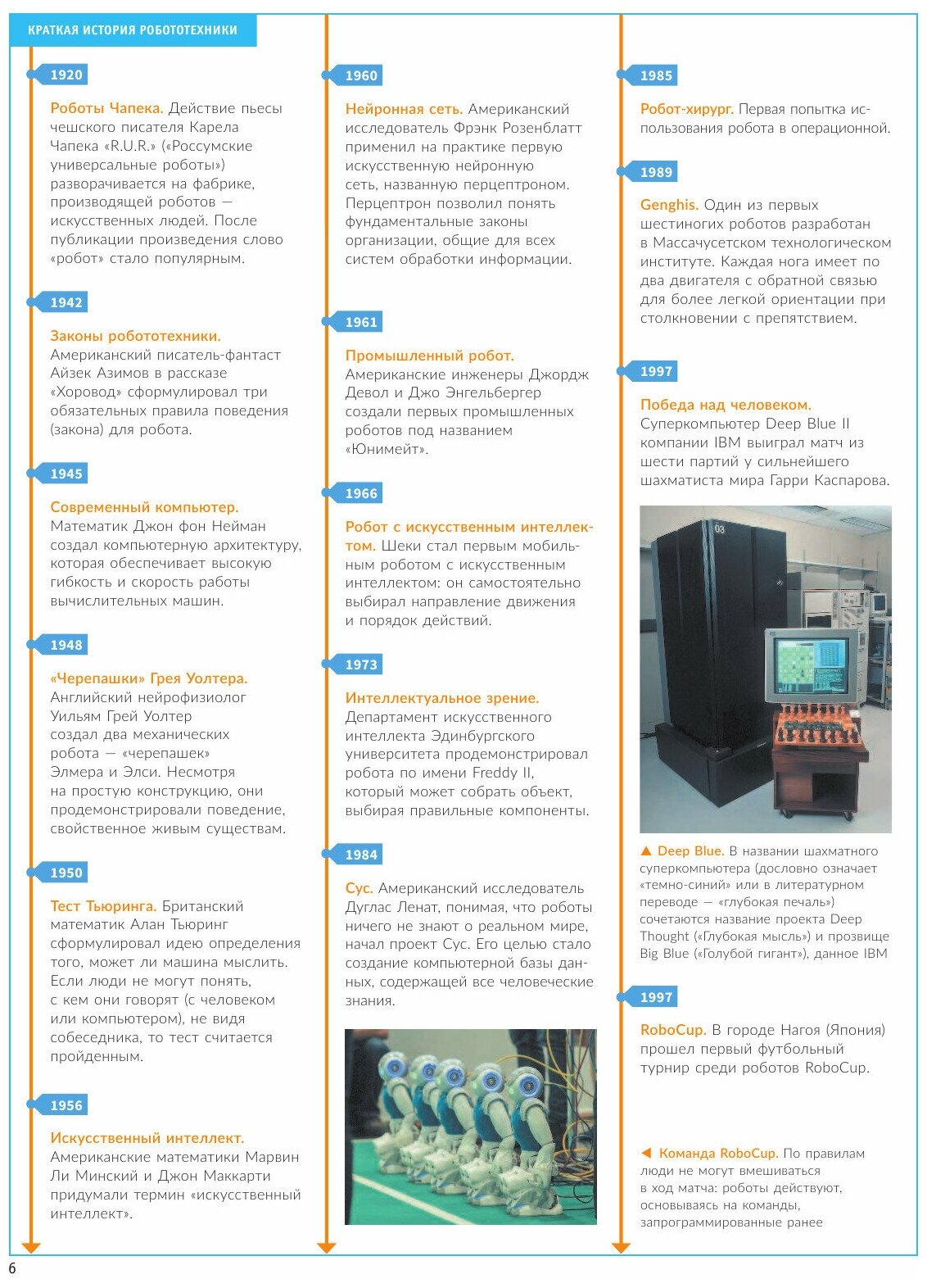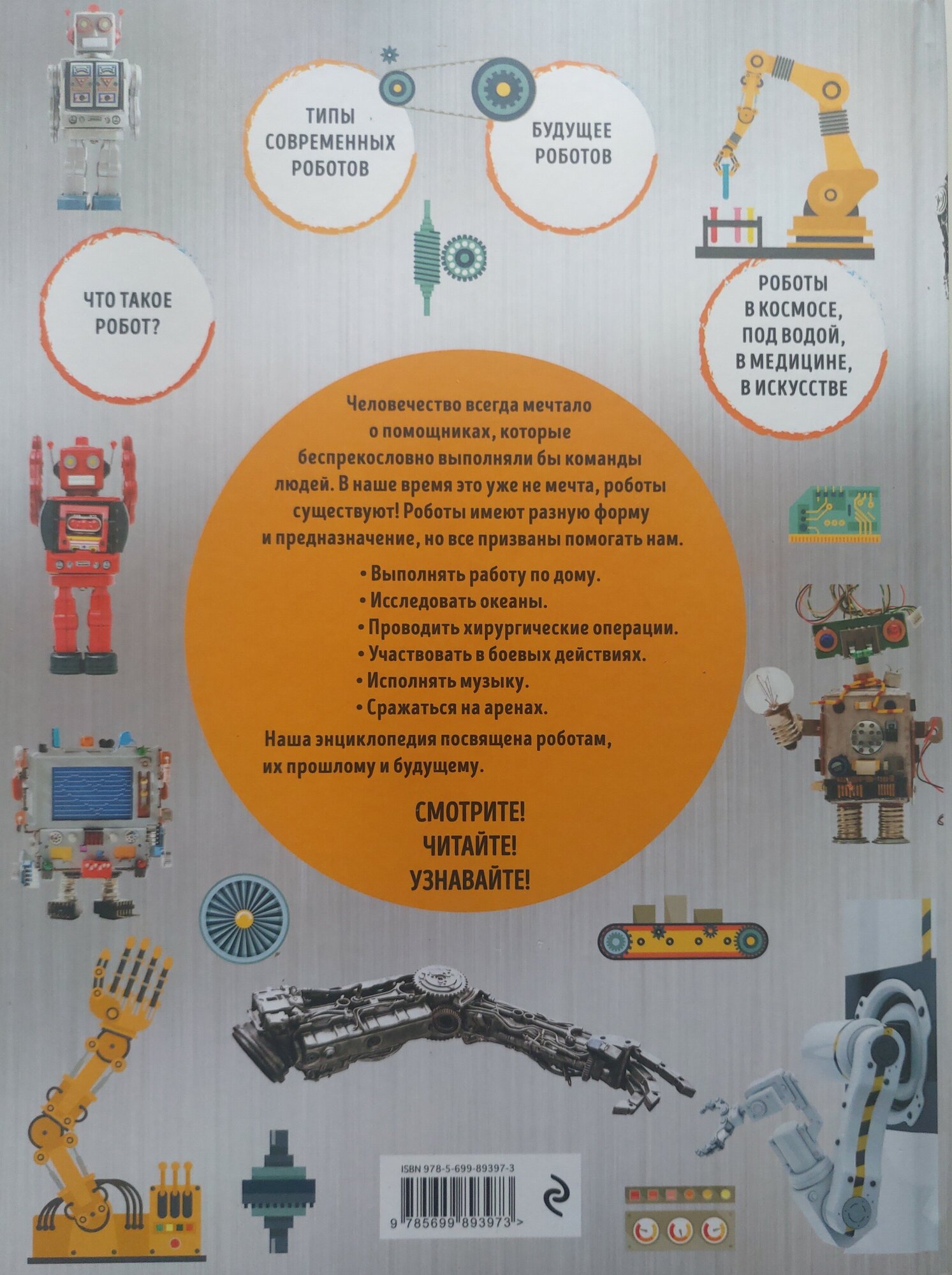 6-летний внук интересуется роботами. Пока, конечно, по-детски. Мне, бабушке, тоже хочется быть в теме. Данная энциклопедия – хороший, краткий обзор с чего все начиналось, где сейчас используются роботы, куда стремится робототехника, где применяется… Интересные фотографии, короткие познавательные статьи, написано понятным языком. Рекомендую.