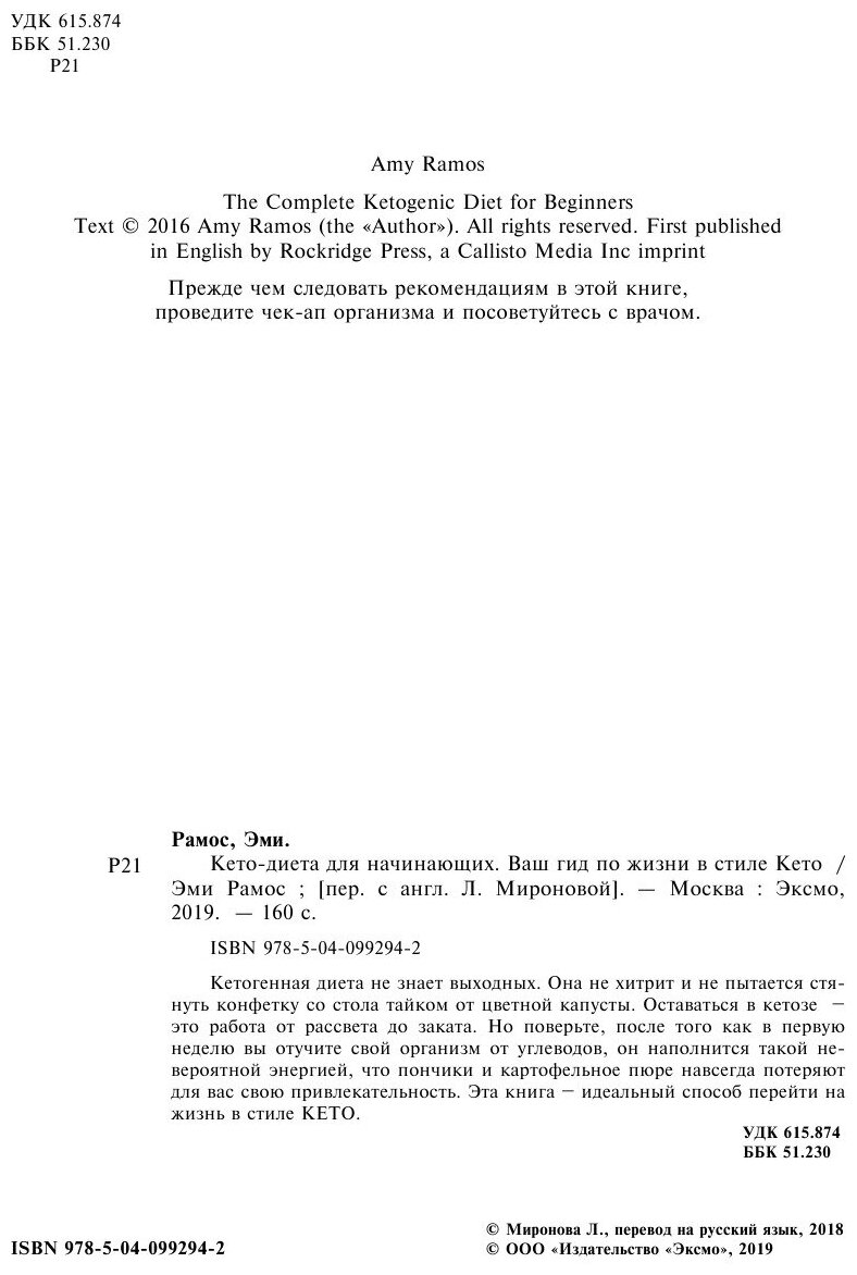 Кето-диета для начинающих. Ваш гид по жизни в стиле Кето (Рамос Эми, Миронова Л.Н. (переводчик)); Эксмо, 2019