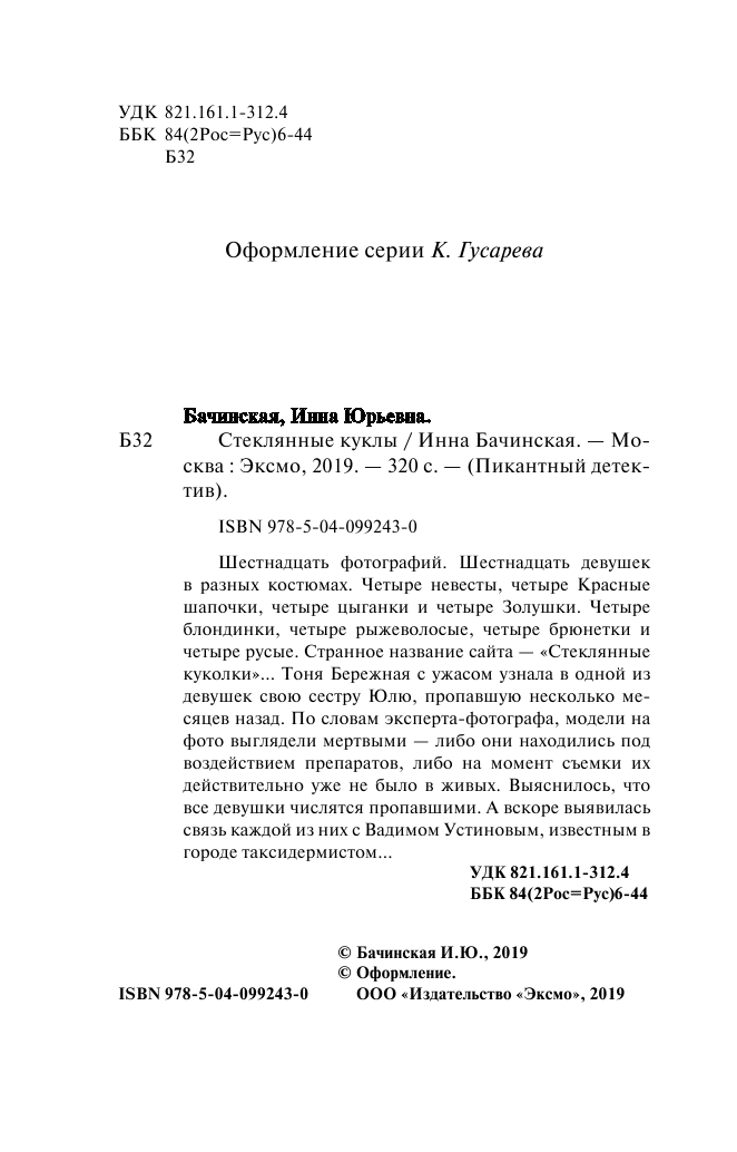 Книга: Стеклянные куклы (Бачинская Инна Юрьевна); Эксмо, 2019