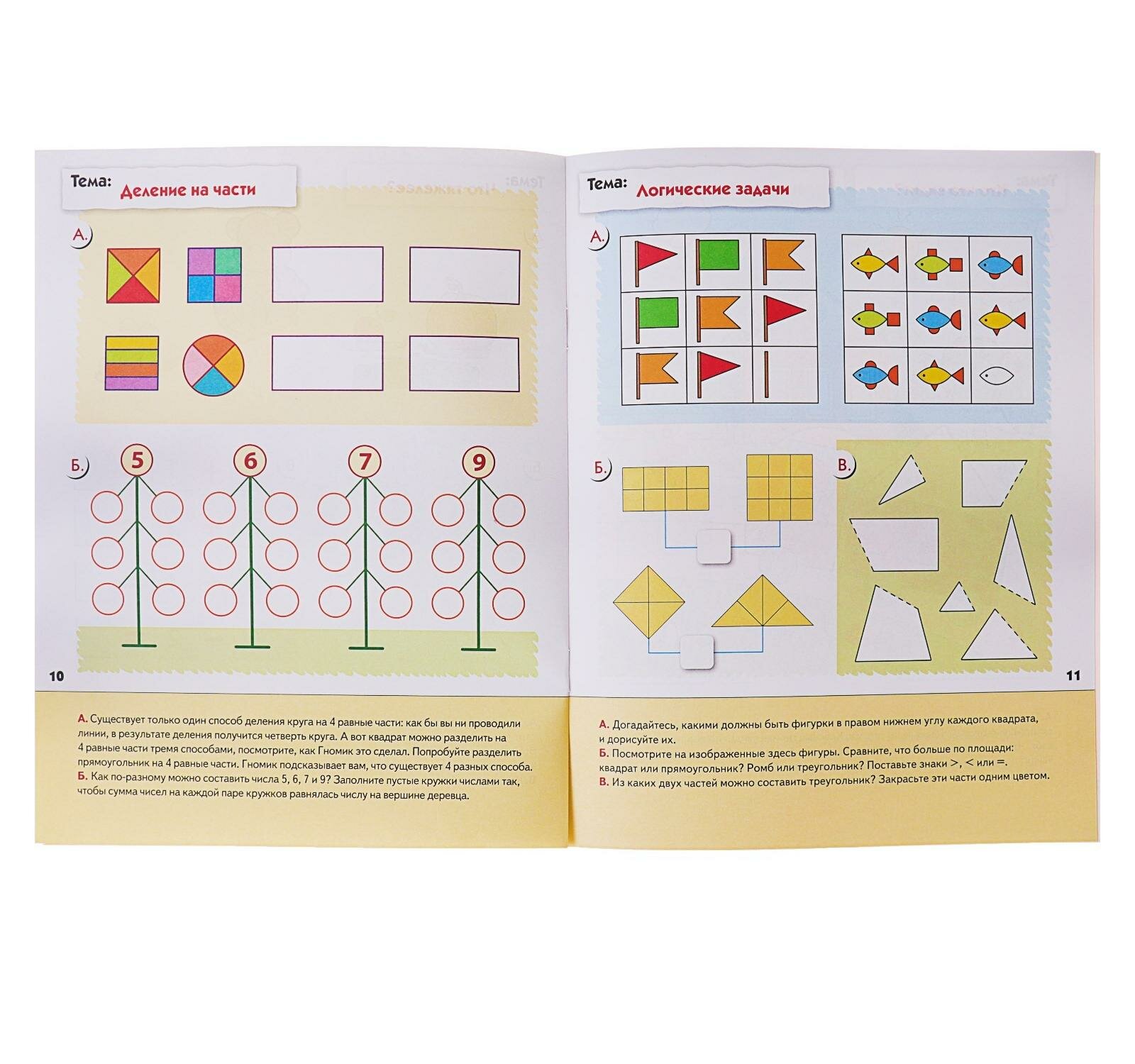 Тетрадь с красочными картинками, интересными заданиями, которые ребенок выполняет с удовольствием. Задания разнообразные, с разной степенью сложности. Составлены задания так, что развивают различные математические способности. Ребенок шести лет справляется с заданиями на отлично, хотя некоторые задания требуют устного разъяснения взрослого. Нам с сыном эта тетрадь очень нравится, как раз тем, что разнообразные задания в ней собраны. Спасибо Читай-городу.