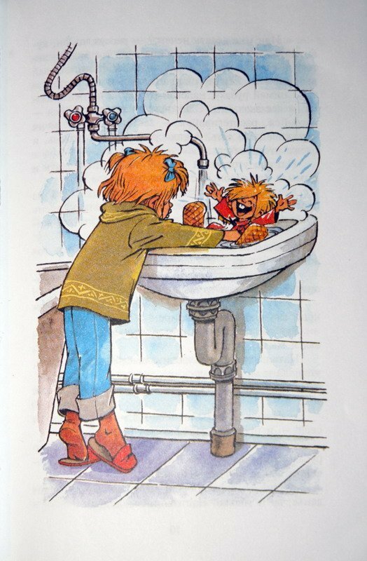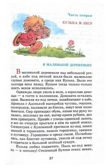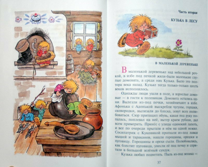 Часто покупаю детские книги, и всегда отдаю предпочтение книгам издательства "Самовар", серии "Школьная библиотека". Очень качественные издания и приятная цена. Крепкая глянцевая обложка, белая плотная бумага, крупный чёткий шрифт, много красочных иллюстраций с "доброй" рисовкой. А про домовенка Кузьку собрала целую серию из трёх книг, хотя эта, первая книга, нравится больше всех. Уж очень милый этот домовёнок, и история добрая и веселая. С мультфильмом, мне кажется, очень мало общего, книга намного лучше.