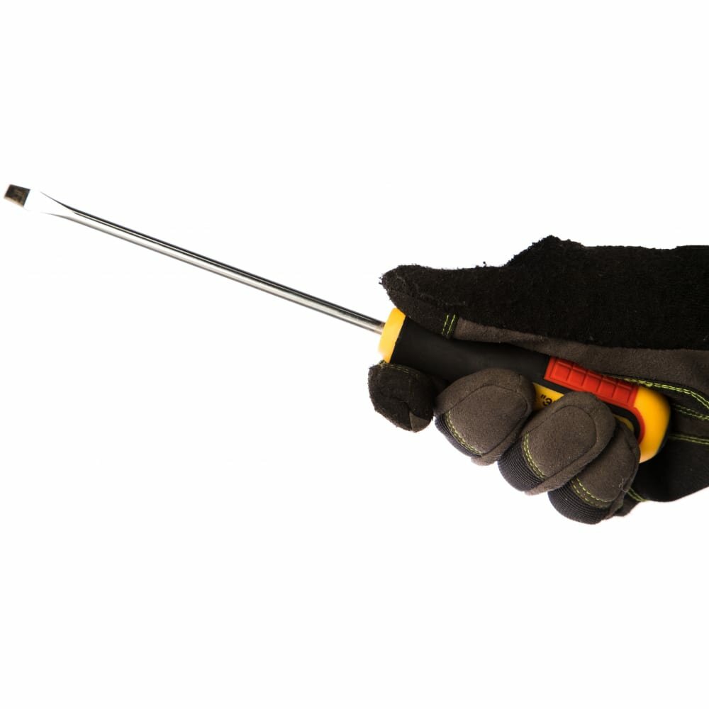 Отвертки предназначены для монтажно-демонтажных работ. Отвертки имеют трехкомпонентную эргономичную рукоятку, удобно лежащую в руке. Сплав хром-ванадий, твердость 47-52 HRC, Наконечник отвертки намагничен. Достаточно большая площадь развальцовки стержня не позволяет проворачиваться стержню в рукоятке.