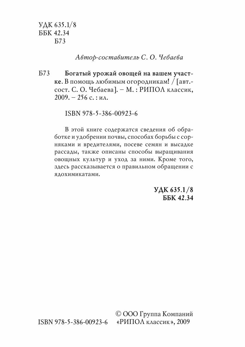 Богатый урожай овощей на вашем участке В помощь любимым огородникам Чебаева С О Рипол (Группа авторов); РИПОЛ Классик, 2009