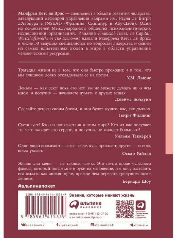 Секс, деньги, счастье и смерть: В поисках себя / Кетс де Врис Манфред ; Пер. с англ. — М. : Альпина Паблишер, 2022. — 440 с. — (Серия «Альпина: психология и философия»).