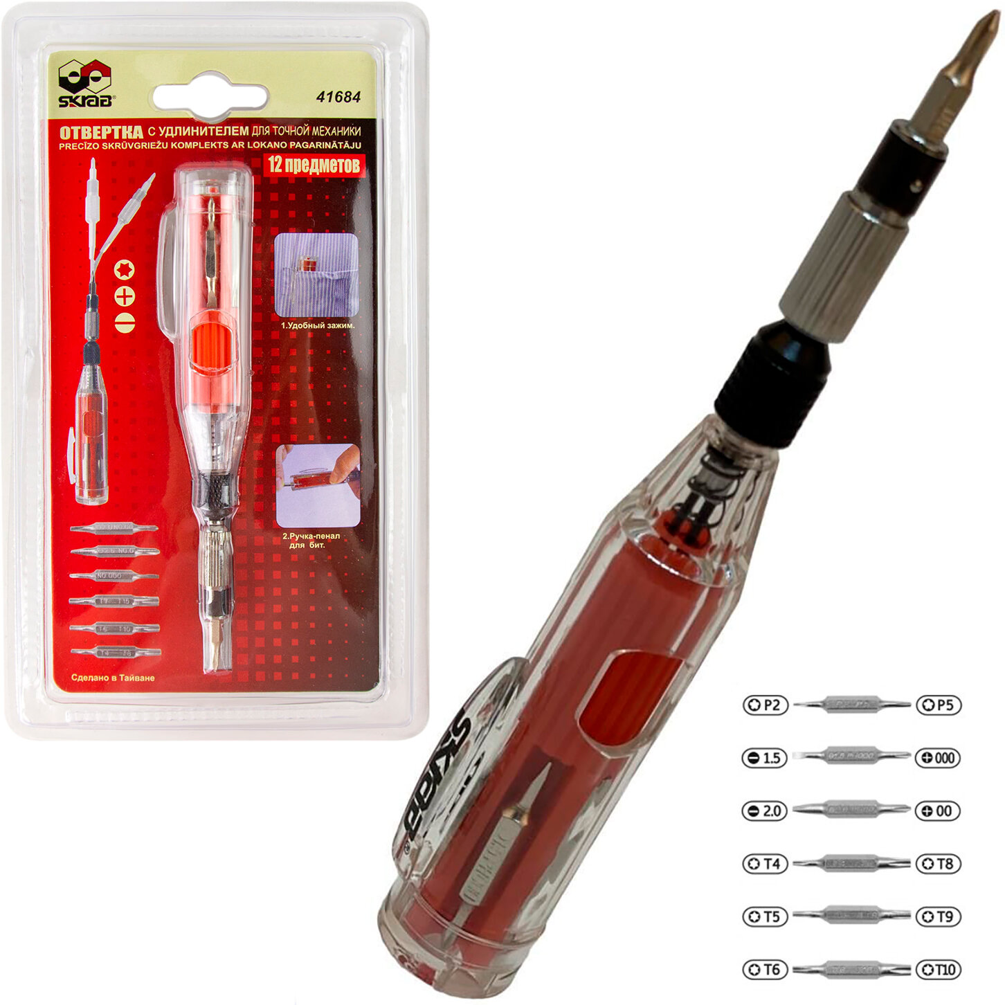 Отвертка Skrab для точной механики 12 в 1 с гибким удлинителем ручка-пенал