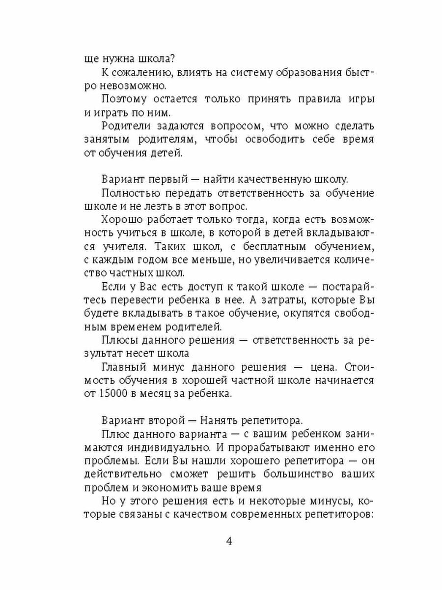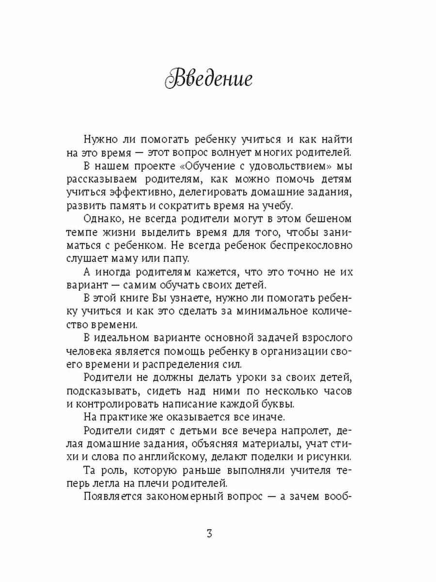 Книга содержит 33 техники эффективного обучения, которые позволяют детям лучше учиться, запоминать в разы больше информации, быстро готовиться к экзаменам, писать без ошибок, учить иностранные слова, готовить сочинения и пересказы быстрее и легче, а родителям окончательно делегировать процесс обучения детям.