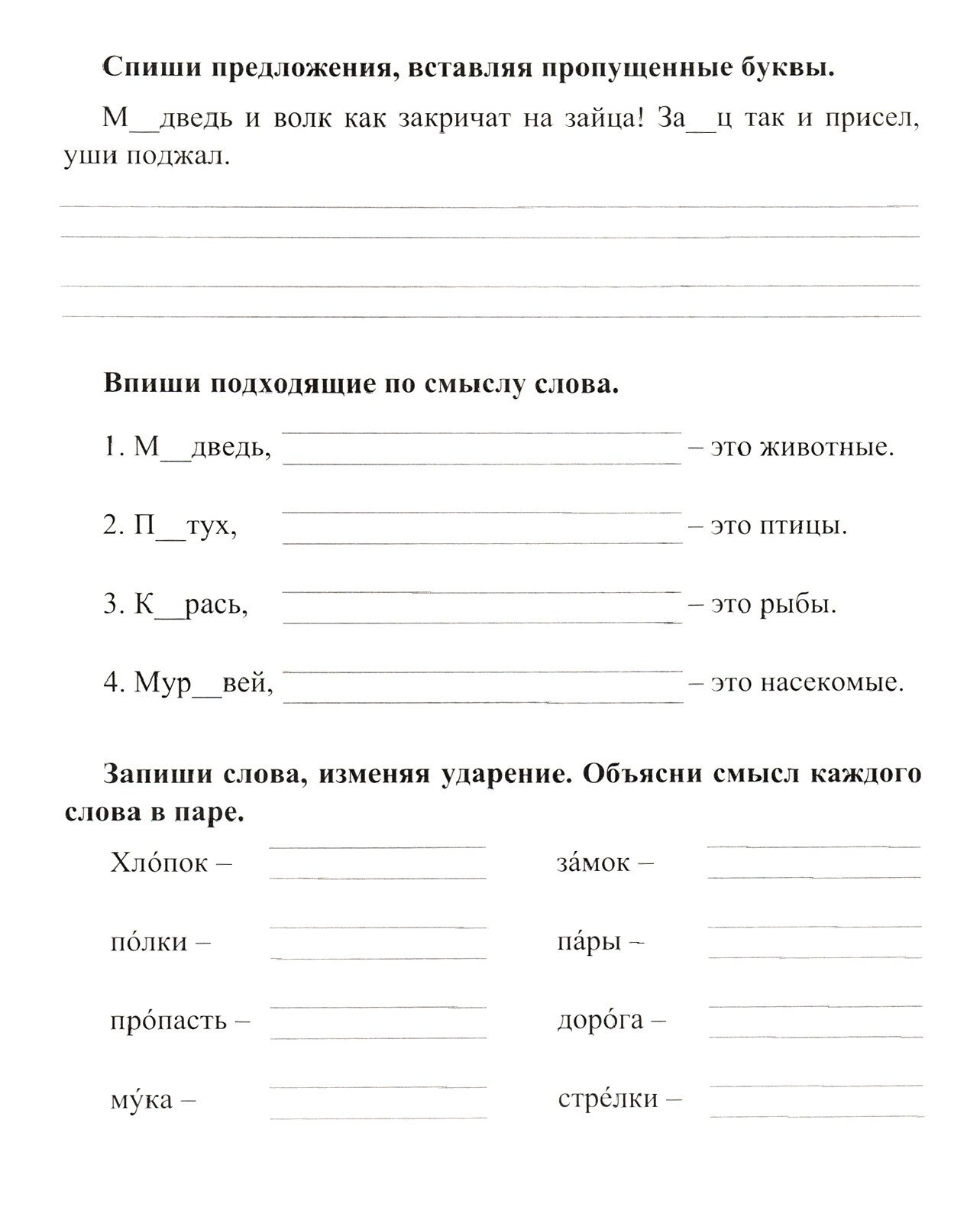 В пособии представлены задания по русскому языку по отработке орфографических навыков для обучающихся 1 классов. Задания направлены на формирование и закрепление навыков написания слов с изученными орфограммами, словарных слов, предложений и текстов.