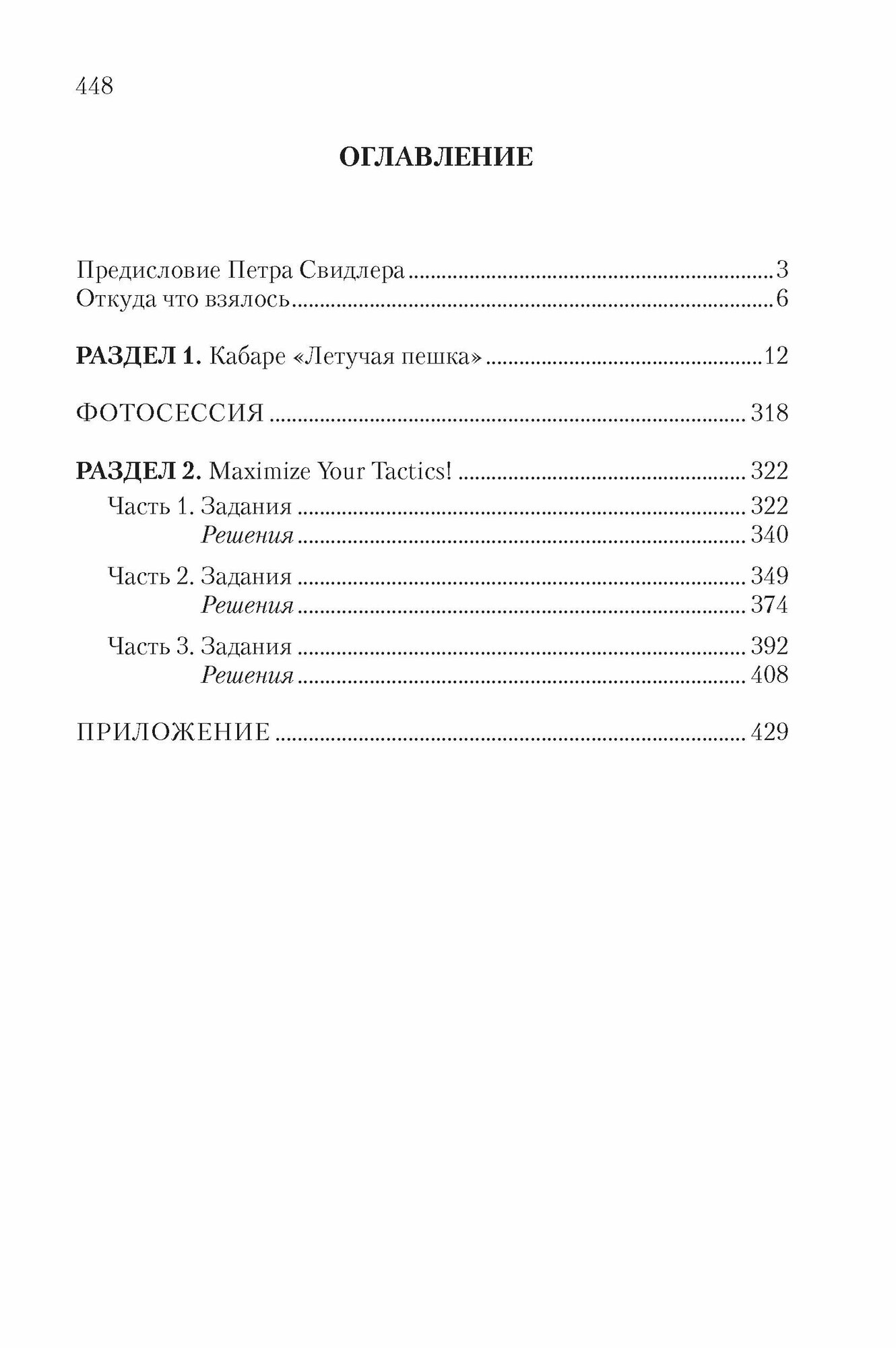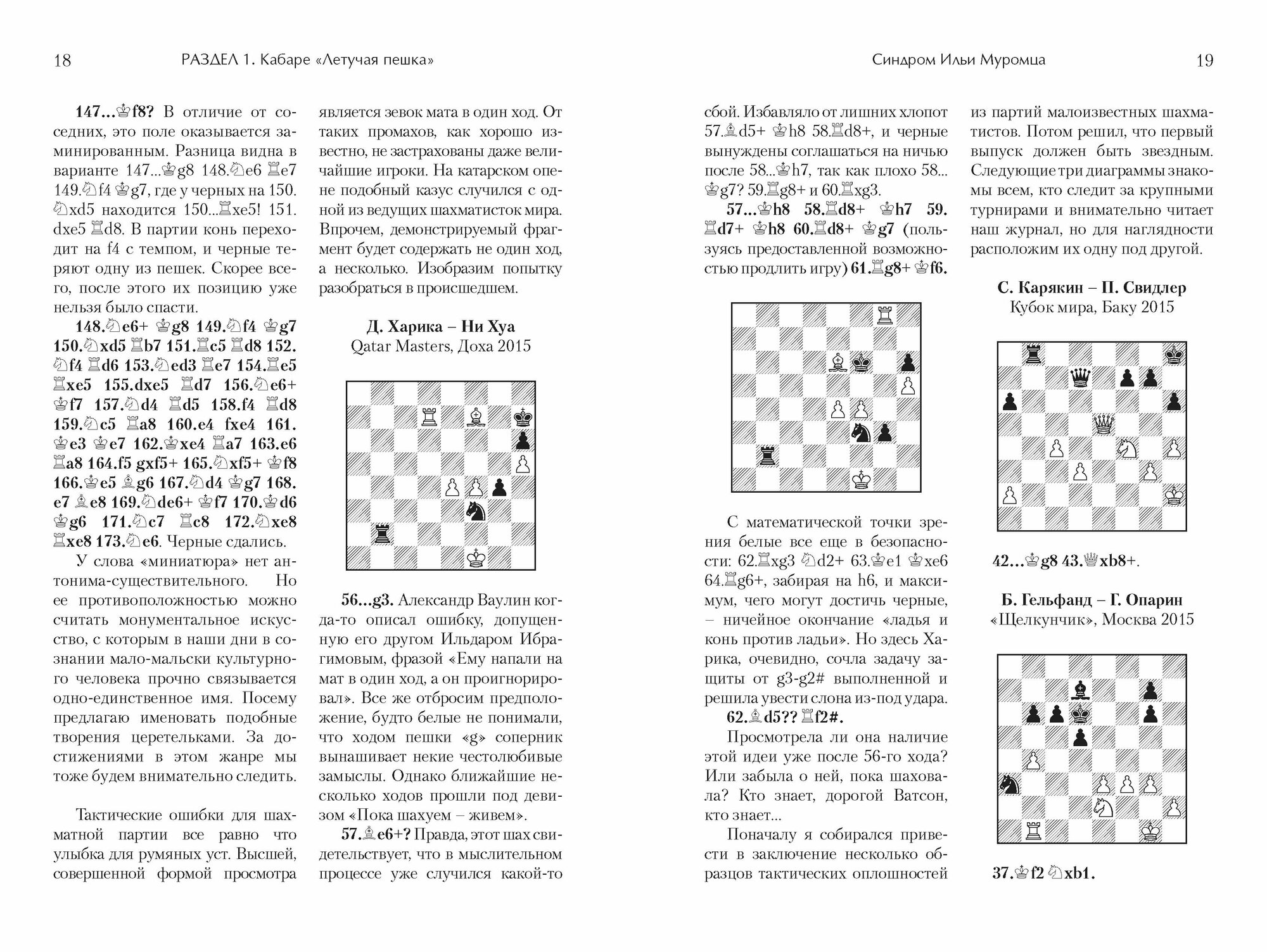 Первая книга известного журналиста, главного редактора журнала «64 – Шахматное обозрение» и сайта ChessPro Максима Ноткина – это сборник избранных материалов автора, опубликованных прежде всего в популярных авторских рубриках «Кабаре "Летучая пешка"» («64») и «Maximize Your Tactics» («New in Chess»). Читателя ждет встреча с блистательными находками на шахматной доске и разного рода рекордами, а также с курьезными ошибками и невероятными затмениями.