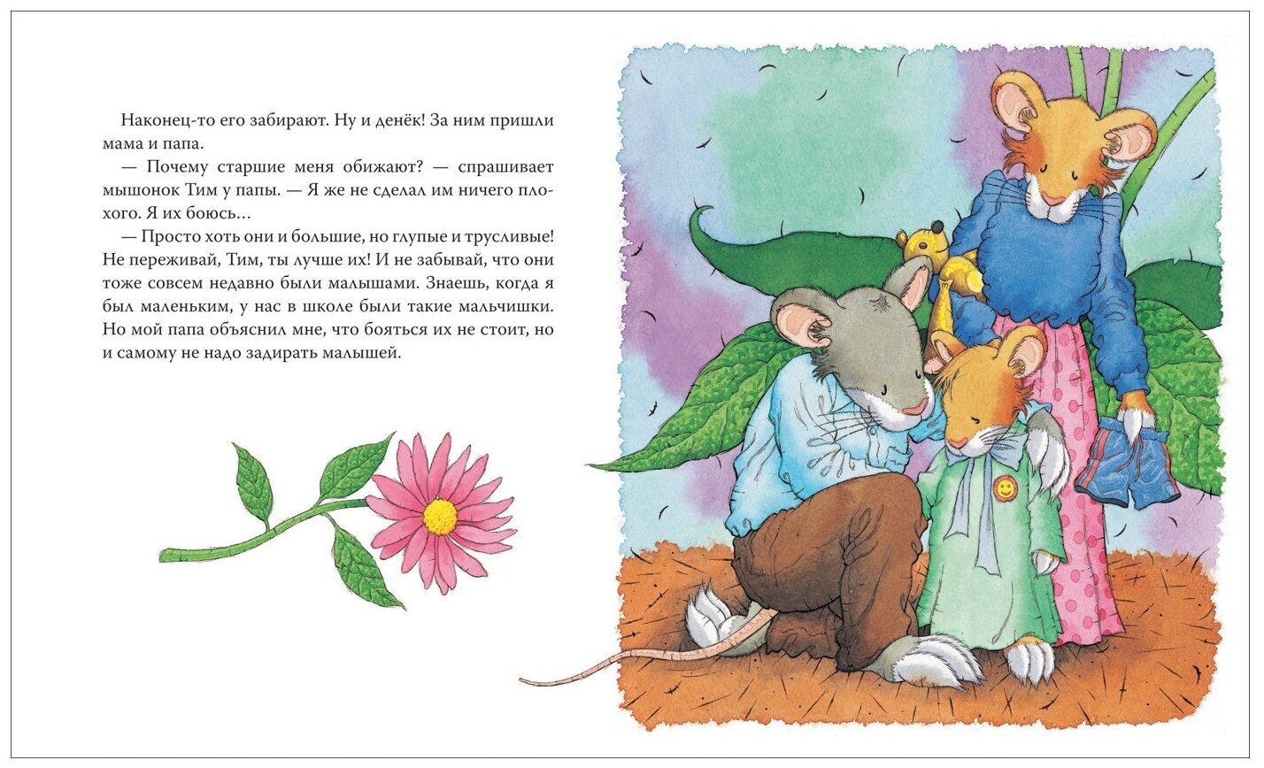 Серия книг про смешного и обаятельного мышонка Тима поможет малышам понимать, признавать и называть свои чувства, научиться общаться со сверстниками и справляться с трудными ситуациями. Мышонок Тим еще маленький и многого боится: темноты, старших детей, которые его задирают, плавать в бассейне, и даже грозы. Но мама и папа расскажут ему, как не бояться.