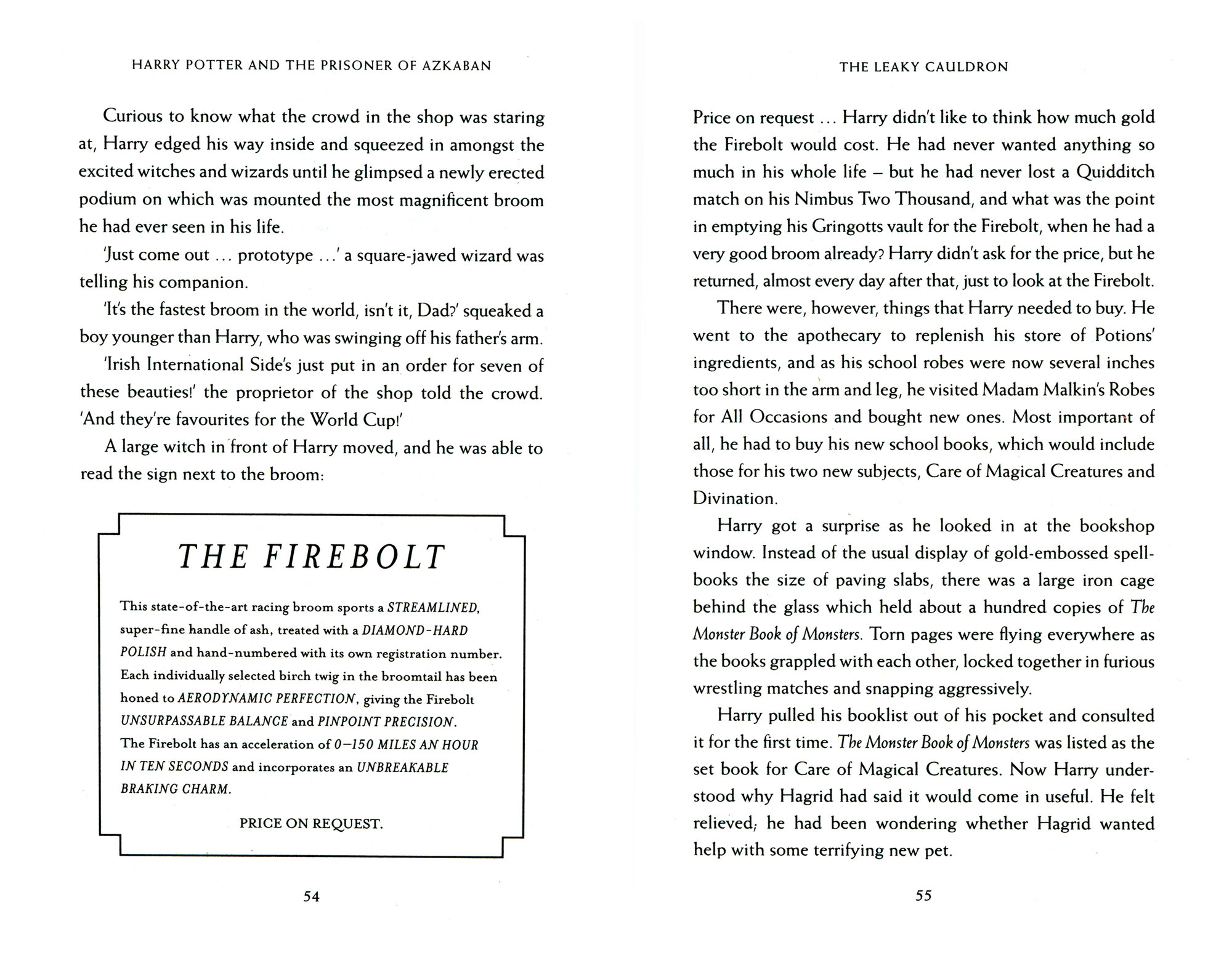 Третья книга в этой серии "для взрослых" почти не отличается от предыдущих: мягкая обложка, сероватая бумага, достаточно крупный шрифт (NB: с четвёртой части он резко уменьшится). Чуть толще второй, образовался один перегиб на корешке. По содержанию - одно наслаждение читать Роулинг в оригинале.