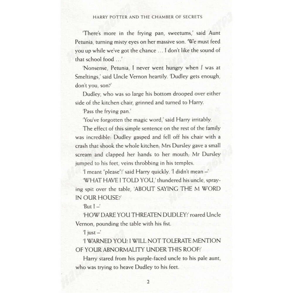 Harry Potter can't wait for his holidays with the dire Dursleys to end. But a small, self-punishing house-elf warns Harry of mortal danger awaiting him at Hogwarts. Returning to the castle nevertheless, Harry hears a rumour about a Chamber of Secrets, holding unknown horrors for wizards of Muggle parentage. Then students are found as though turned to stone, and a terrible warning is discovered painted on the wall. The chief suspect - always in the wrong place - is Harry. But something much darker has yet to be unleashed.