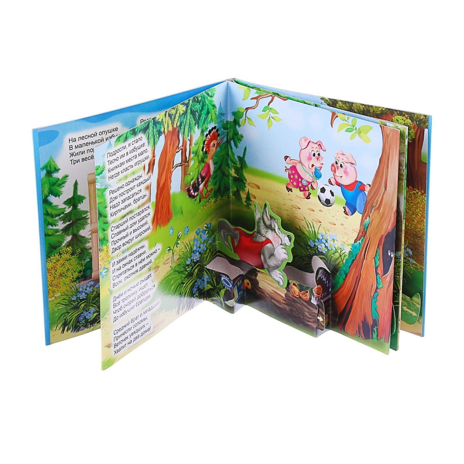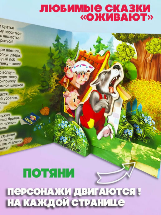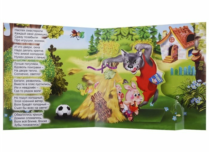 дочь полюбила сказку Три поросёнка. Ну думаю, интересная подача книги-панарамка. получила сегодня книгу, оформляла онлайн. она красочная, плотная, но картинки не совсем относятся к сказке, а текст вообще придуман другим автором. я всё таки не понимаю, зачем менять подачу сказки. приходится показывать одно, рассказывать совсем другое. при заказе, всё таки посмотрите книгу в магазине